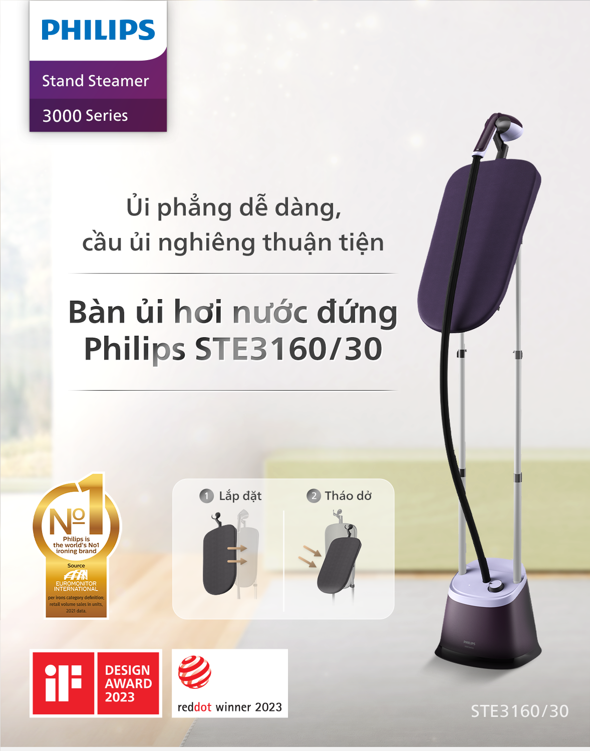 - - Tích hợp tấm ván ủi tiện lợi. - Được thiết kế để linh hoạt và tiện lợi. - Công nghệ ExtraHygiene loại bỏ đến 99,99% vi khuẩn trong 1 phút* - Ba mức