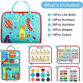 ✨Bảng bận rộn hình chiếc cặp busy board bằng vải đồ chơi giáo dục sớm 14 chi tiết