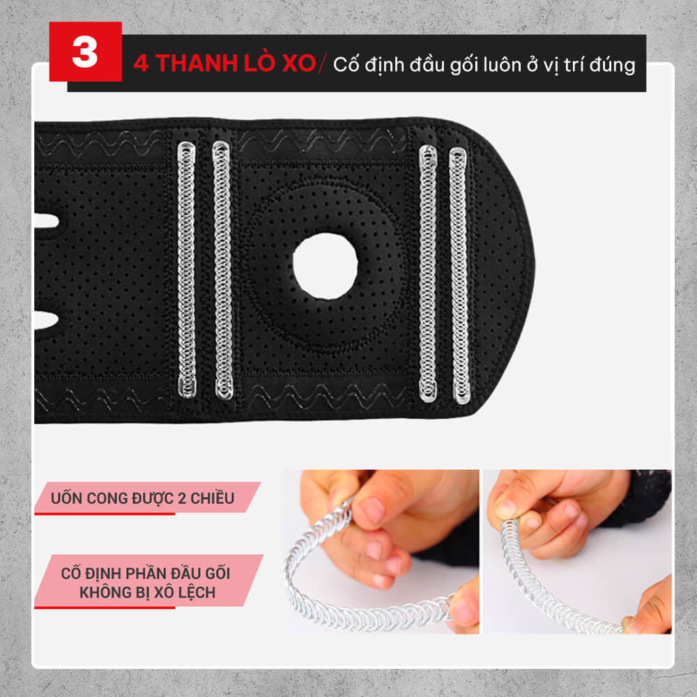 Bó gối thể thao lỗ khí thoáng mát AOLIKES A-7912B Four spring sport knee support Aolikes 1PCS Non-slip Neoprene Knee Brace with Spring Support Silicone Patella Pad Adjustable Knee Compression Band Bó gối thể thao
