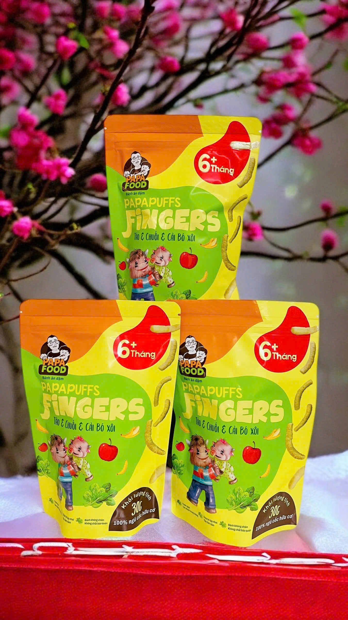 ✨Bánh ăn dặm PAPAFOOD PAPAPUFFS Chuối & Táo & Cải Bó Xôi - 100% Ngũ Cố Hữu Cơ - Gói 30G