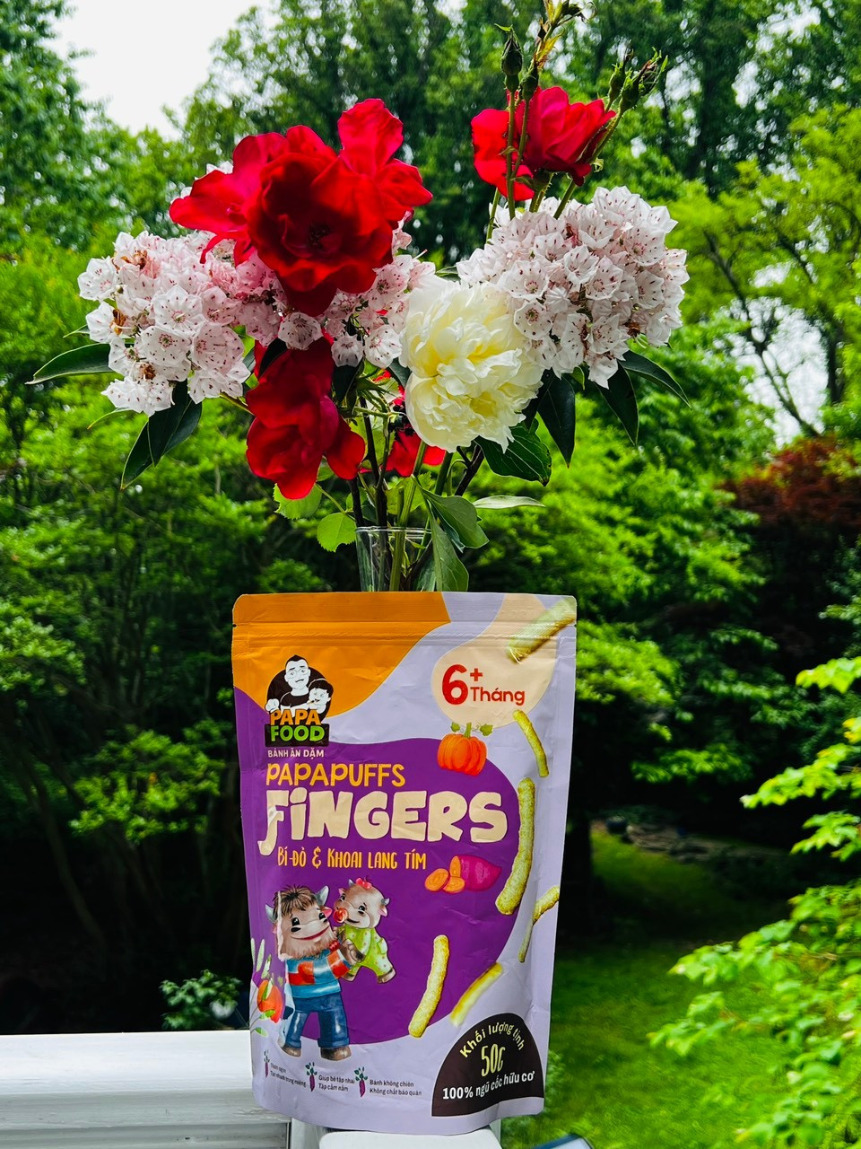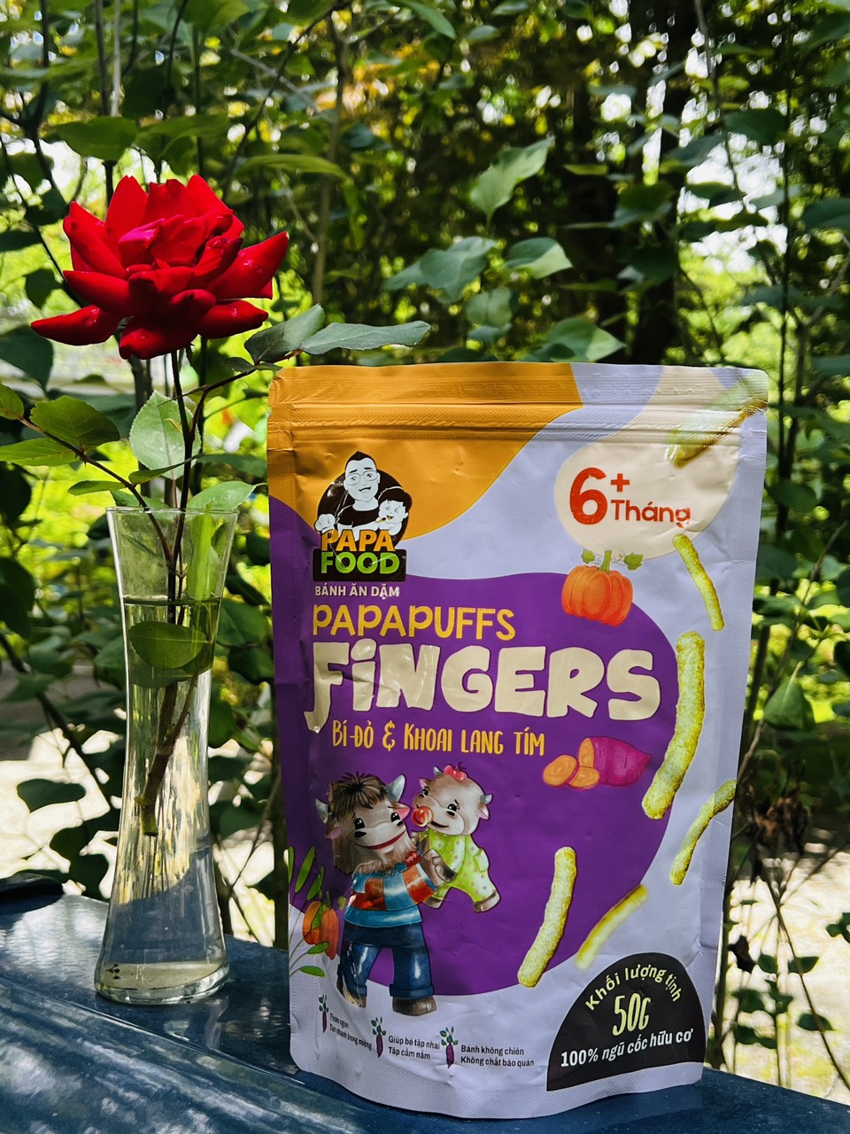 - Tên sản phẩm: Bánh ăn dặm PAPAPUFFS FINGERS - BÍ ĐỎ VÀ KHOAI LANG TÍM .