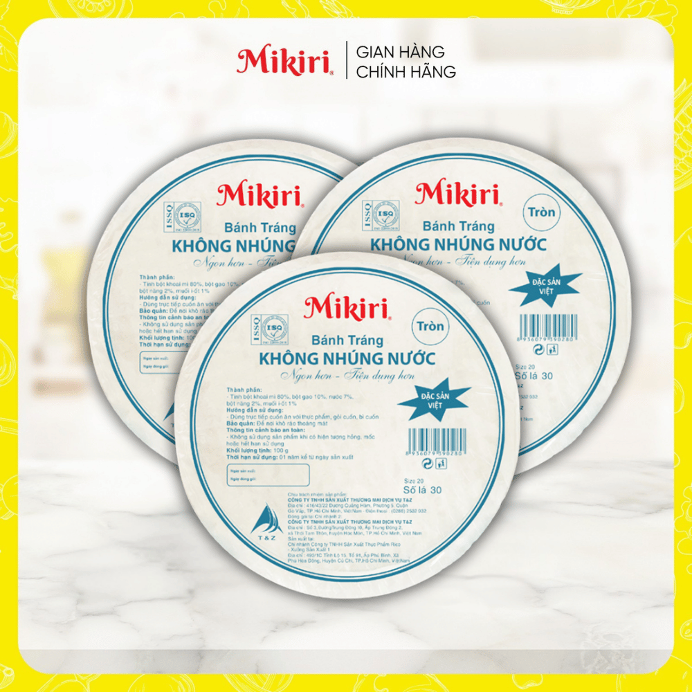 Bánh tráng tròn Mikiri không nhúng nước size lớn nhỏ - tiện lợi - ăn liền Combo lựa chọn Với thành phần của bánh tráng gồm: tinh bột, khoai mì và muối. Dùng làm gỏi cuốn, bì cuốn. Không phải nhúng nước khi sử dụng, lá bánh mềm và dẻo.