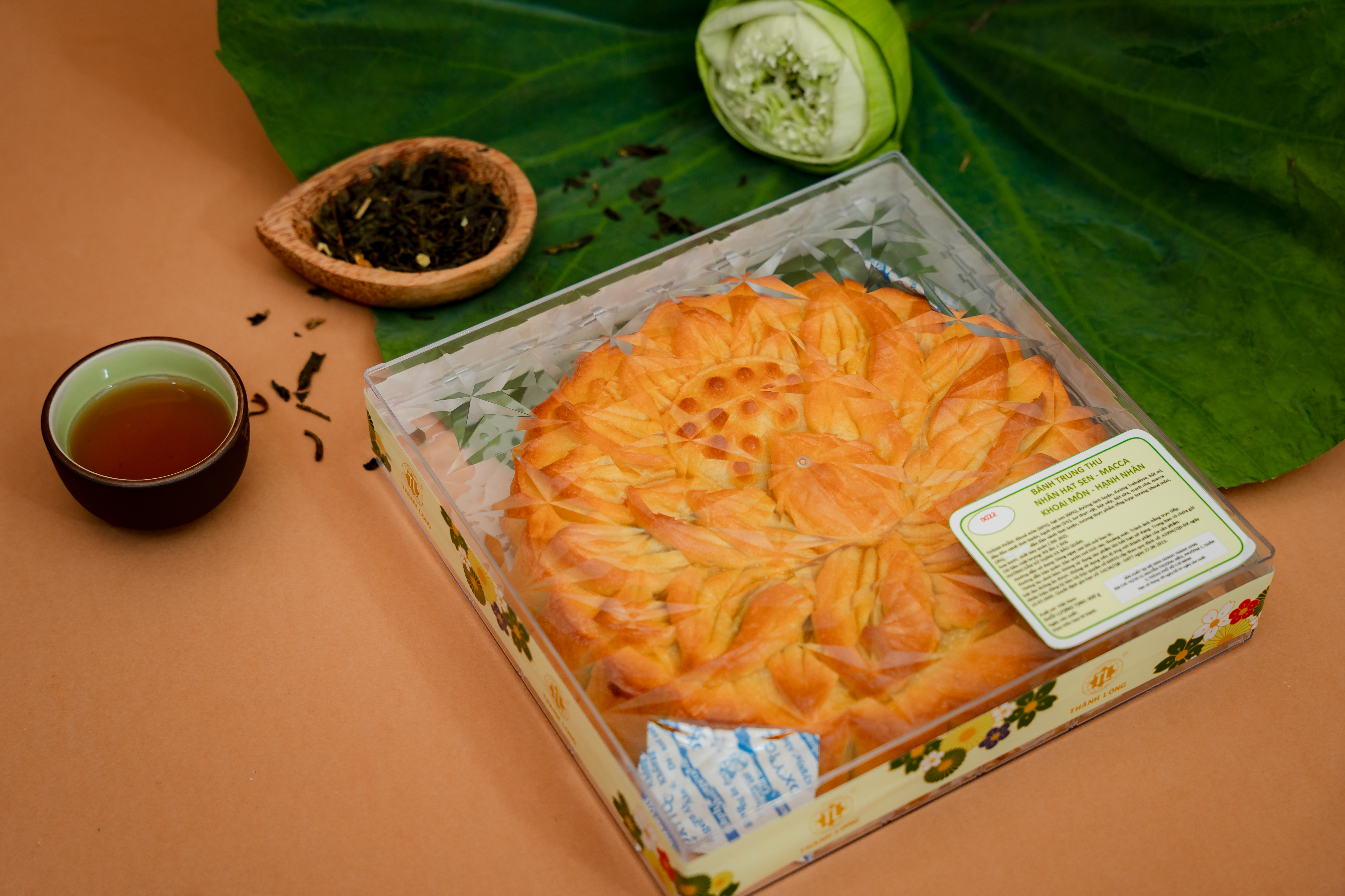 Bộ hộp Bánh trung thu Trường Phúc - Thành Long gồm 4 bánh: Nhân thập cẩm vi cá hải sản ( 220g ) Nhân hạt sen macca ( 220g ) Nhân trà xanh hạnh nhân