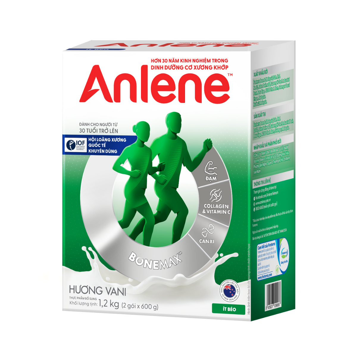 SỮA ANLENE HƯƠNG VANISản phẩm sữa cho người lớn tuổi (từ 30 tuổi trở lên) với HỆ DƯỠNG CHẤT BONEMAX chứa hàm lượng cao Đạm, Canxi, Collagen, các loại Vitamin (B, C, D) & Khoáng chất (Magiê, Kẽm), CUNG CẤP DINH DƯỠNG NỀN TẢNG giúp duy trì sức khỏe hệ vận động cho Cơ-Xương-Khớp khỏe mạnh, linh hoạt!