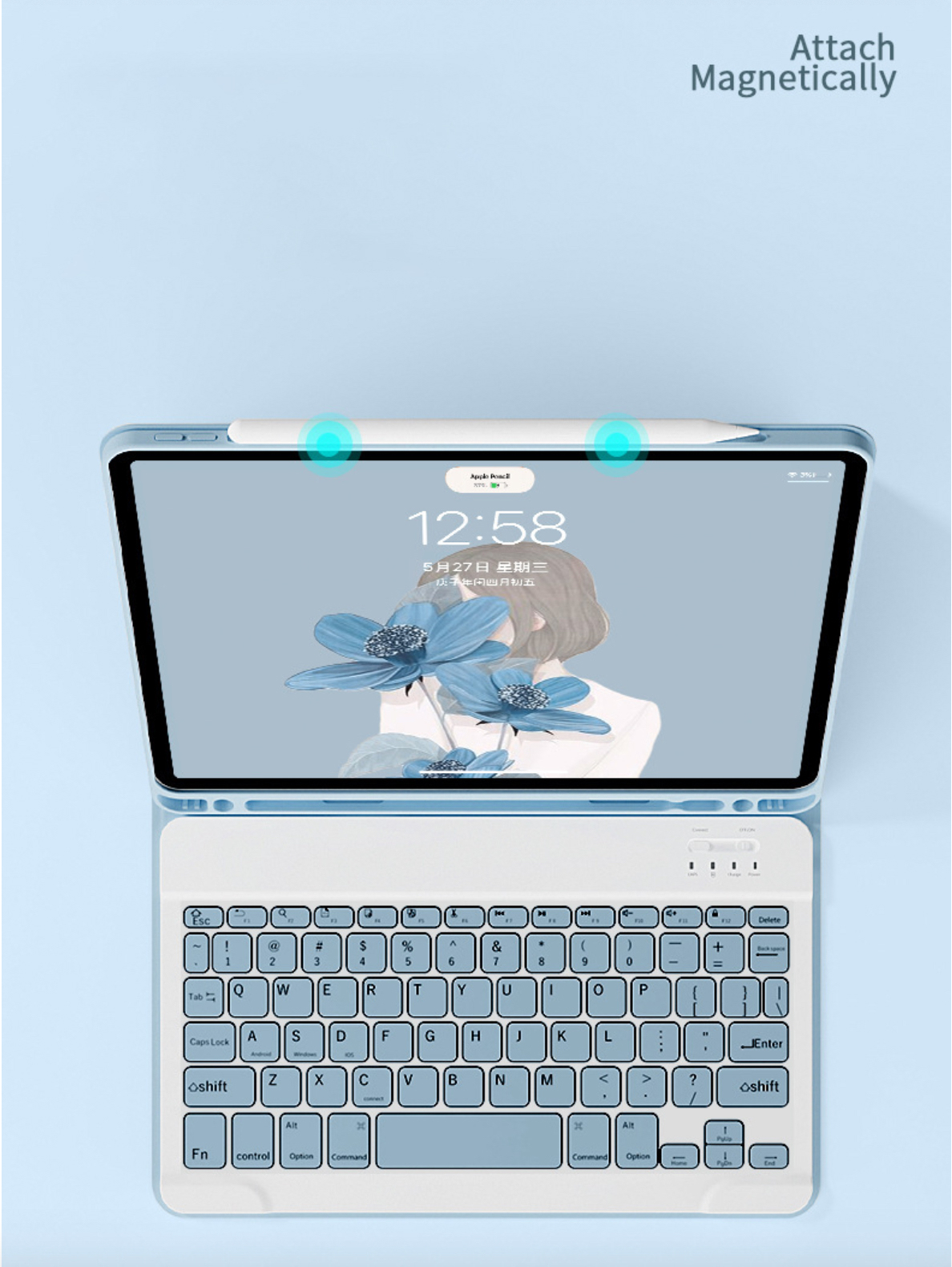 Bao da iPad Smart Keyboard kèm bàn phím Bluetooth. 1: Dành cho iPad. Giải pháp bàn phím Bluetooth 2: Khoảng cách hiệu quả 10 mét 3: Thời gian chờ: 300 giờ 4: Giờ làm việc