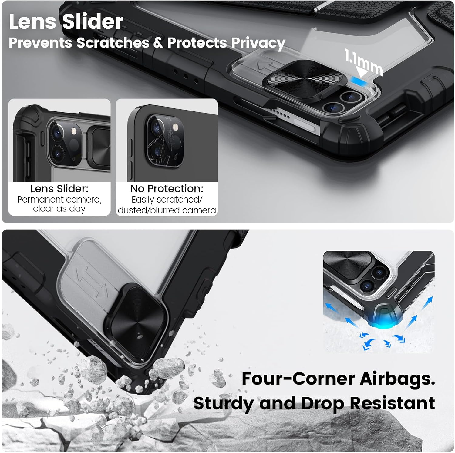 【TÍNH TƯƠNG THÍCH】 — Vỏ bàn phím Magic có đèn nền Nillkin tương thích với iPad Air 11 inch & iPad Air 13 inch M2 M3 2025/2024. Nâng cao trải nghiệm iPad của bạn với vỏ bàn phím đa năng. 【LÝ DO NILLKIN BUMPER LINK KEYBOARD CASE CHO IPAD CỦA BẠN】 — Vỏ iPad có bàn phím có trải nghiệm gõ tuyệt vời, nắp ống kính trượt, bàn di chuột có phản hồi xúc giác, trải nghiệm gõ tuyệt vời với hàng chức năng, cổng USB‑C để sạc qua, bảo vệ mặt trước và mặt sau và khả năng gắn từ tính. Ghép nối Bluetooth siêu đơn giản. 【ĐƯỢC THIẾT KẾ ĐỂ THOẢI MÁI】 — Vỏ bàn phím Link cho iPad này có thiết kế gắn vòng từ tính để có góc nhìn mượt mà, có thể điều chỉnh. Cũng có thể biến thành vỏ từ tính riêng biệt khi tháo khỏi bàn phím, để linh hoạt hơn và chỉ sử dụng vỏ từ tính cho tất cả những nơi bạn có thể từ hóa. 【THIẾT KẾ ĐỘC ĐÁO】— Ốp lưng iPad có bàn phím này được trang bị thiết kế nắp trượt độc quyền, nắp gương kim loại nguyên khối tăng chiều cao 1,1MM để bảo vệ ống kính tốt hơn và đảm bảo an toàn cho quyền riêng tư của bạn. Các đường viền nhô lên của ốp lưng ipad pro 13 inch 2024 có bàn phím này xung quanh camera và màn hình vừa khít với ipad, ngăn bụi bẩn xâm nhập vào bên trong hiệu quả 【BÀN PHÍM CÓ ĐÈN NỀN 7 MÀU ĐÃ NÂNG CẤP】 — Bao da iPad có bàn phím này có 7 màu đèn nền. Các phím có đèn nền với 4 mức độ sáng điều chỉnh theo nhu cầu của bạn, với pin lâu dài, bao da iPad có bàn phím có thể hỗ trợ bạn sử dụng liên tục tới 100 giờ (không có đèn nền) và 14 giờ (có đèn nền). Không gian để sạc Apple Pencil trong khi vẫn giữ bao da bàn phím iPad, dễ dàng mang theo và sử dụng. 【VỎ BÀN PHÍM BẢO VỆ】 — Bốn góc của vỏ bàn phím iPad này được làm cao hơn để hấp thụ hiệu quả các cú sốc. Vỏ bàn phím được thiết kế với kết cấu lốp xe. Với sự kết hợp của ốp lưng TPU mềm và mặt sau bằng PC cứng để bảo vệ kép khỏi bị rơi và trầy xước. Gấp lại để bảo vệ mặt trước và mặt sau mọi lúc mọi nơi