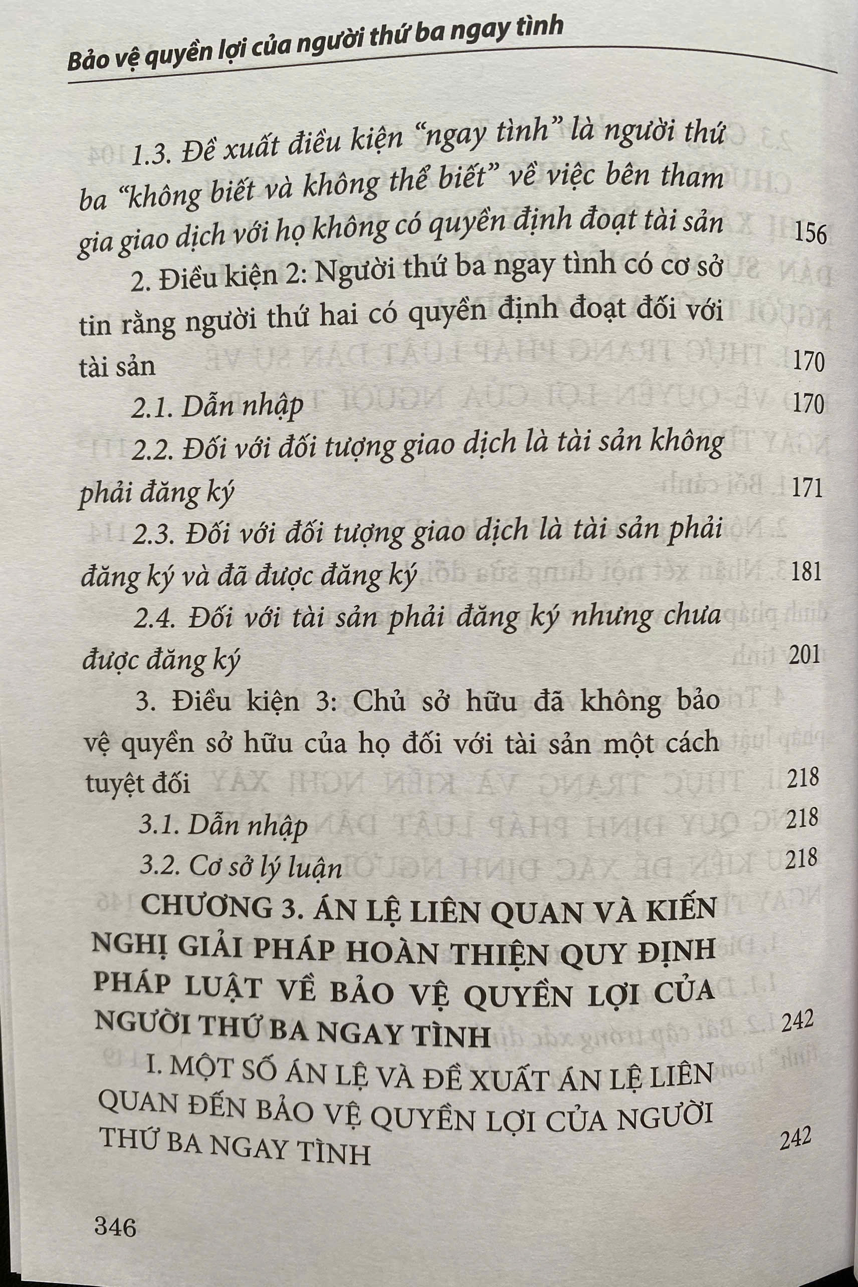 Bảo vệ quyền lợi của người thứ ba ngay tình (sách chuyên khảo) Tác giả: Ts. Đặng Thanh Hoa (chủ biên) Nhà xuất bản: Tư Pháp Công ty phát hành: NXB Tư Pháp Ngày xuất