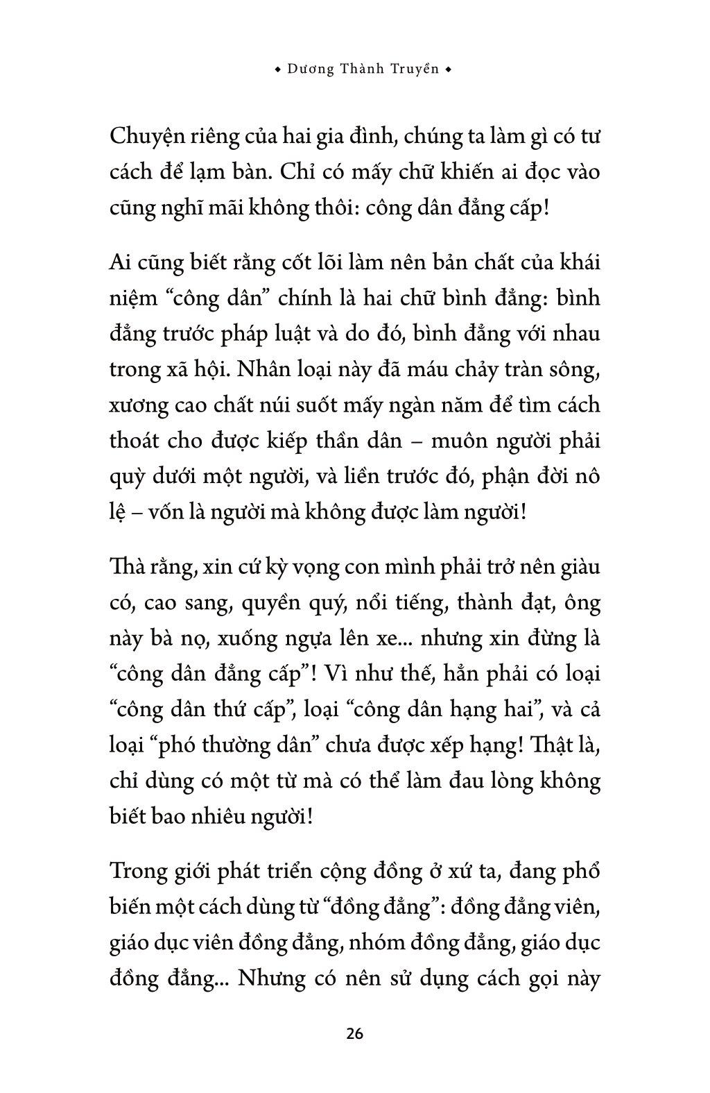 Và cả những trăn trở day dứt rằng: Thà rằng, xin cứ kỳ vọng con mình phải trở nên giàu có, cao sang, quyền quý, nổi tiếng, thành đạt, ông này bà nọ, xuống ngựa lên xe… nhưng đừng gọi là “công dân đẳng cấp”. Vì thế hẳn có loại “công dân thứ cấp”, và cả loại “phó thường dân” chưa xếp hạng. Thật là, chỉ dùng có mấy chữ mà làm đau lòng không biết bao nhiêu người.