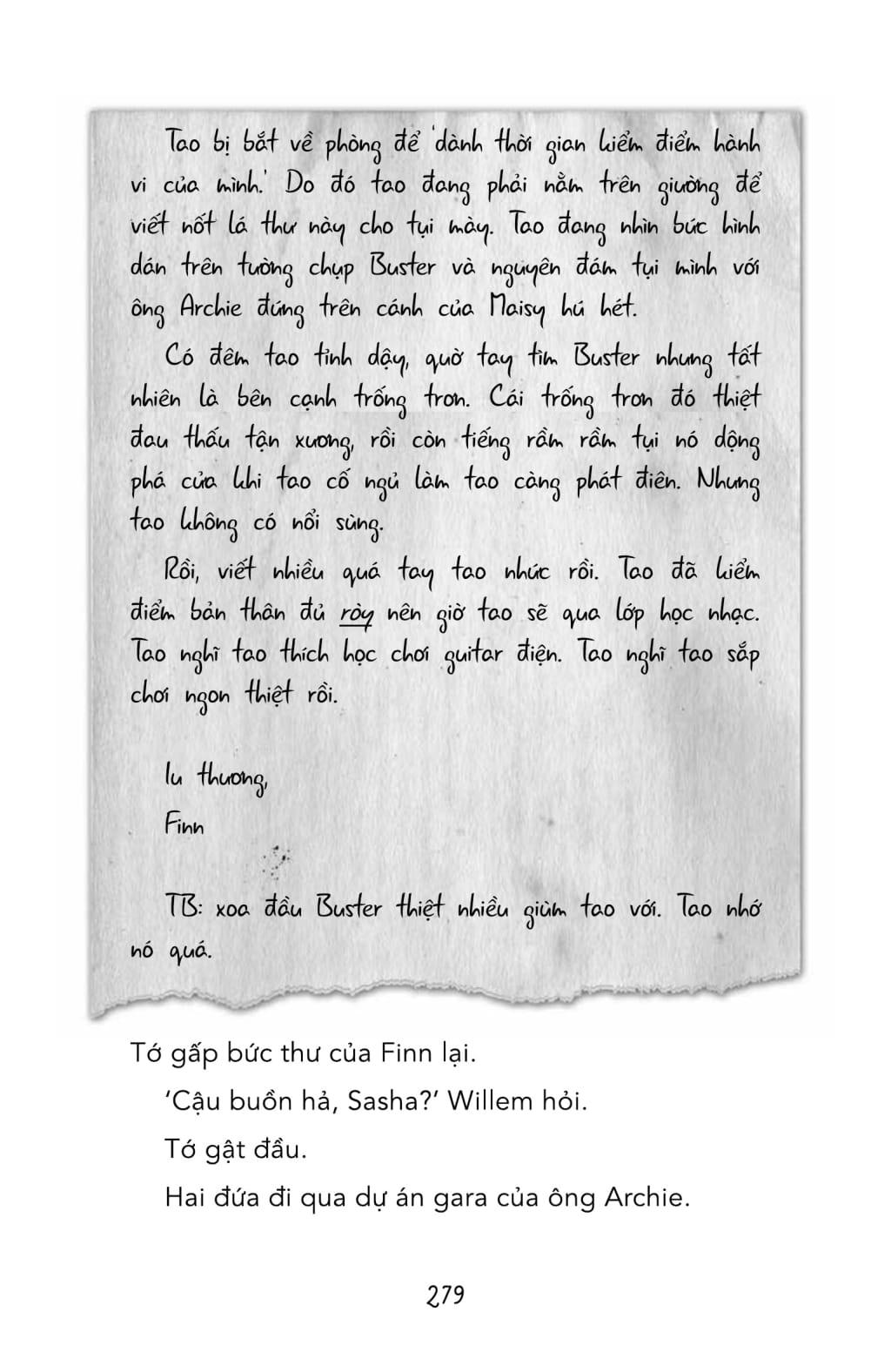 Giữa lúc ba thằng Finn, Laurence và TJ thi nhau hú hét, chế nhạo, khủng bố tinh thần Willem, chợt có tiếng kêu khóc can ngăn của Sasha Barton. Sasha và Finn là bạn từ hồi chơi hố cát nhà trẻ. Gần đây, thằng Finn nắm tay Sasha làm con bé thấy bủn rủn kỳ cục! "Cảm nắng" thằng Finn ư? Lẽ nào! Nhưng khi Willem liều mạng nhảy từ trên tường xuống, vẫy hai tay như cánh chim và té "rắc" một phát, gãy chân, thằng Finn nắm tay Sasha lôi tuột đi thì con nhỏ răm rắp làm theo, bỏ mặc Willem nằm rên la trên đất.