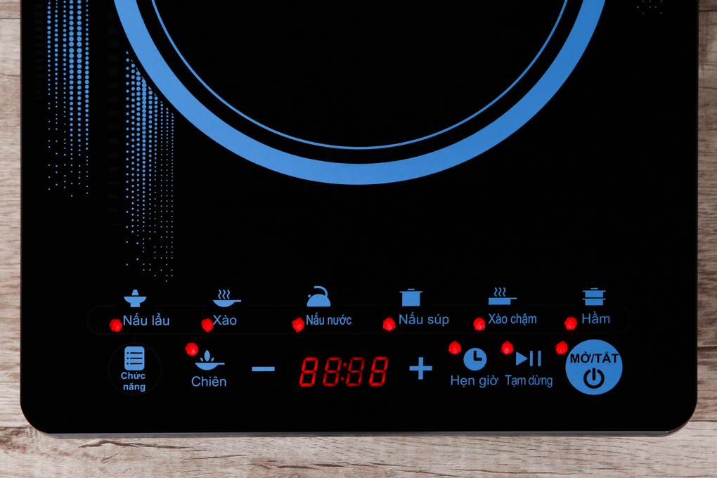 Mặt bếp bằng kính Ceramic có khả năng chịu nhiệt chịu lực tốt, sáng đẹp, hạn chế trầy xước, lau chùi dễ dàng Bếp từ đơn với công suất 2100W mạnh mẽ, 7 chế độ nấu tự động giúp bạn dễ dàng hơn với việc nội trợ Các chế độ nấu gồm: nấu lẩu, xào, xào chậm, chiên, hầm, nấu nước, nấu súp.