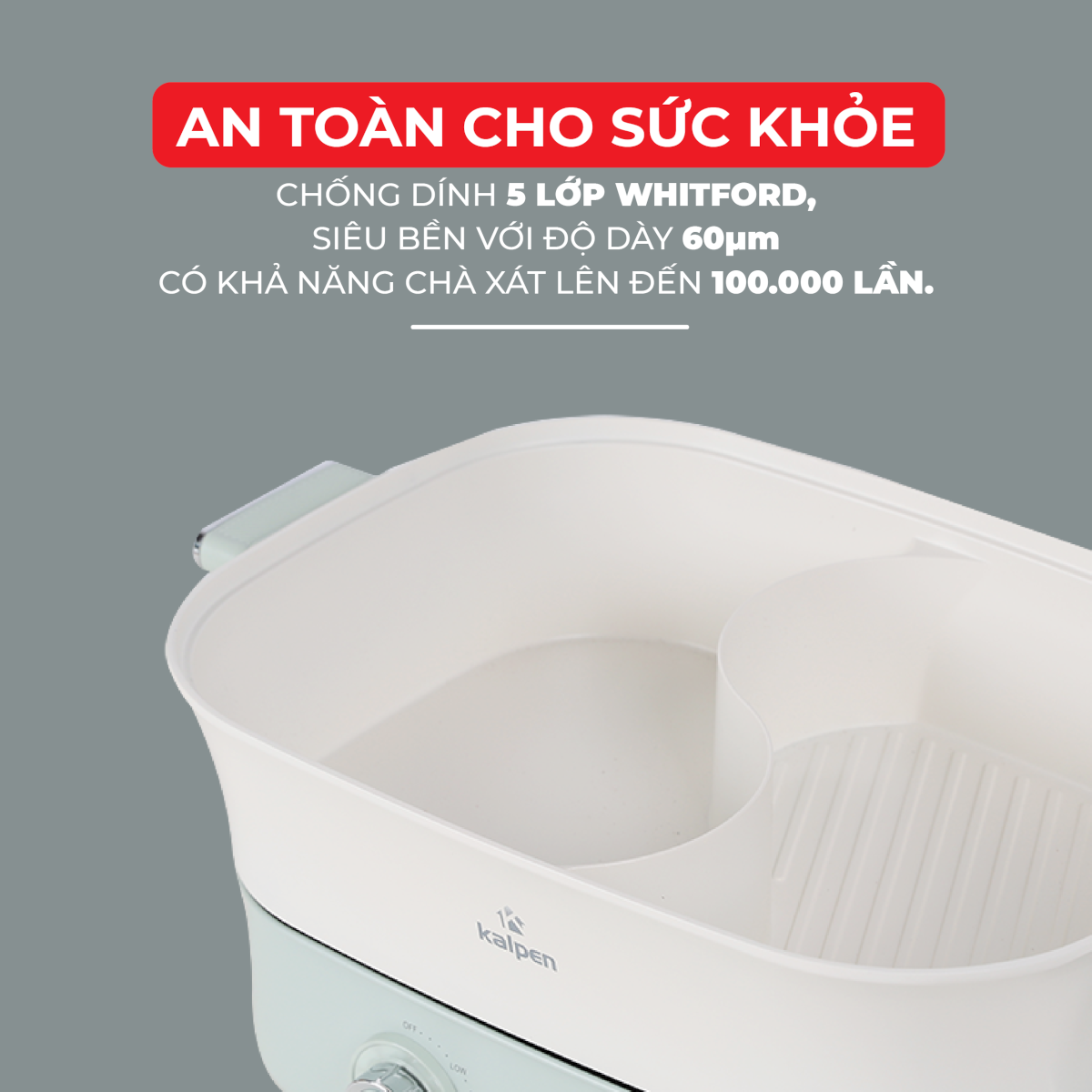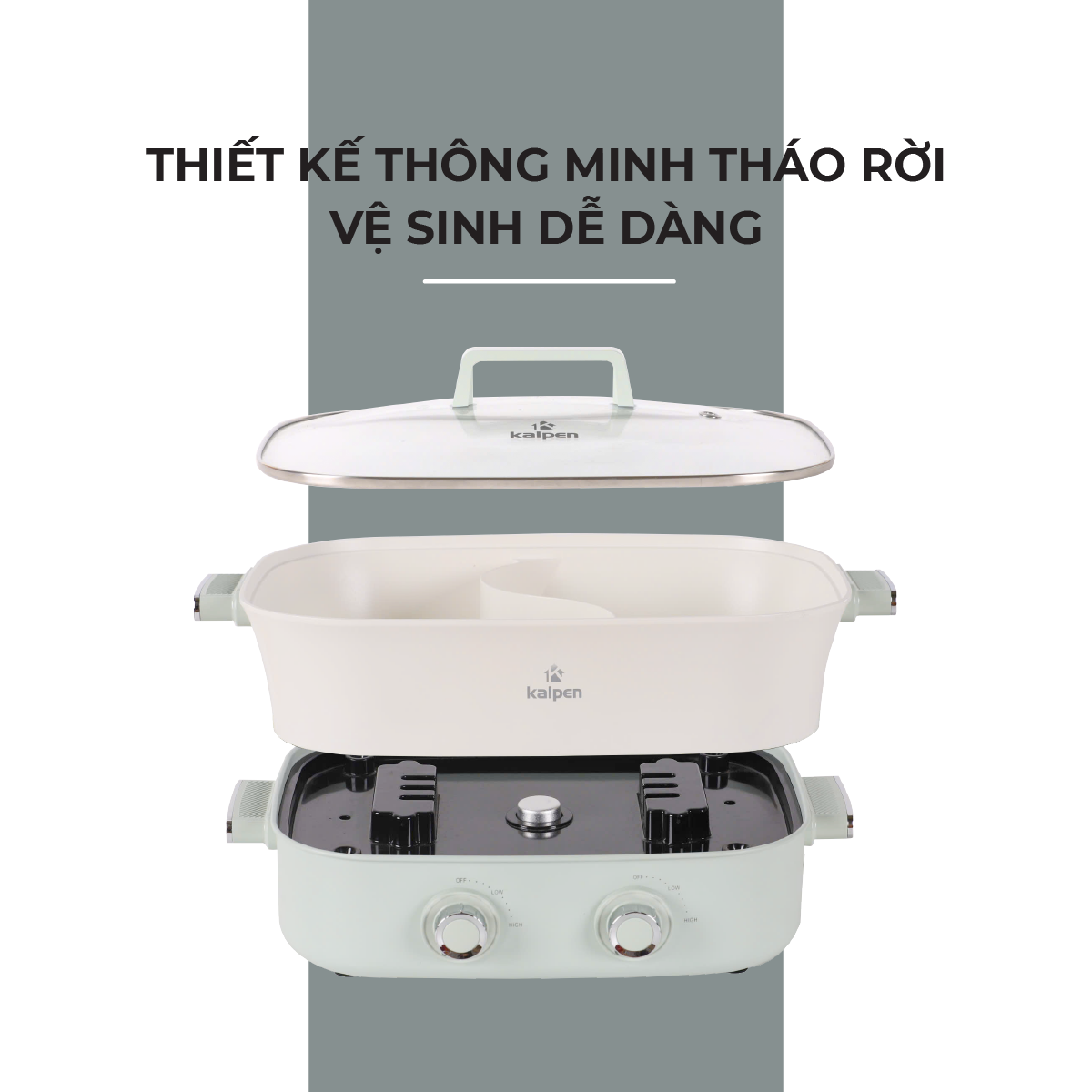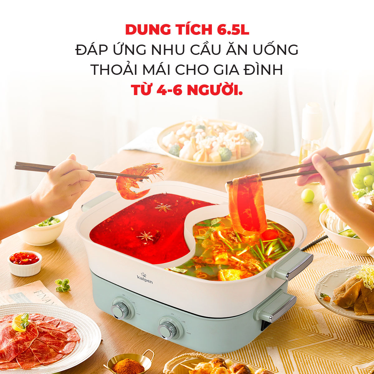 ✨Bếp Nướng Lẩu Hai Ngăn Đa Năng Kalpen 6.5L PP66 Công Suất 2200W - Hàng Chính hãng