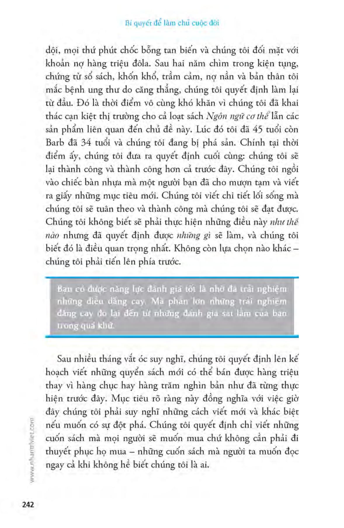 Trong quyển sách này, các tác giả chia sẻ những trải nghiệm của họ với tất cả sự trung thực qua lối hành văn hóm hỉnh quen thuộc để giúp bạn có được một cuộc sống như mong muốn.