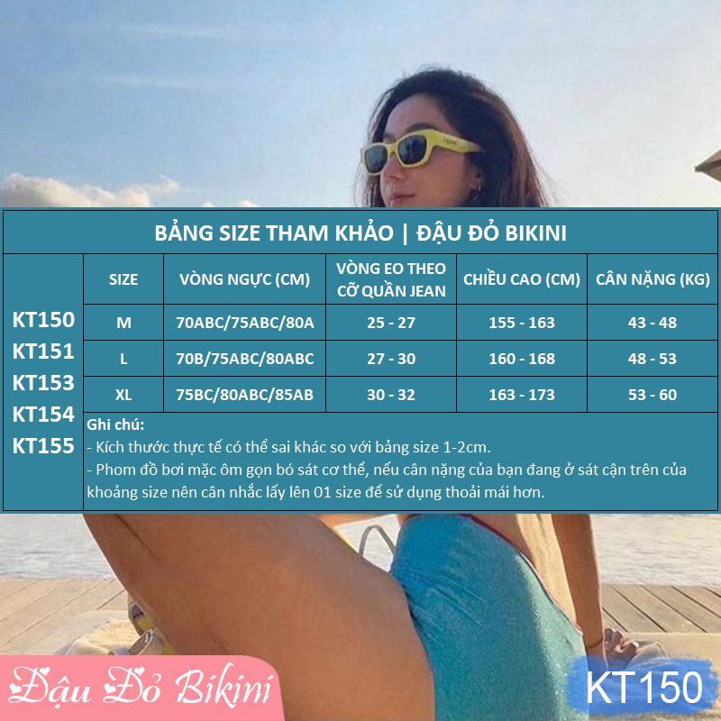 Chất thun loại 1 dày dặn, đanh mịn, không giữ nước nên rất nhẹ và mau khô. Lưu ý: Hiện nay trên thị trường có rất nhiều loại bikini nhưng cùng lấy 1 kiểu