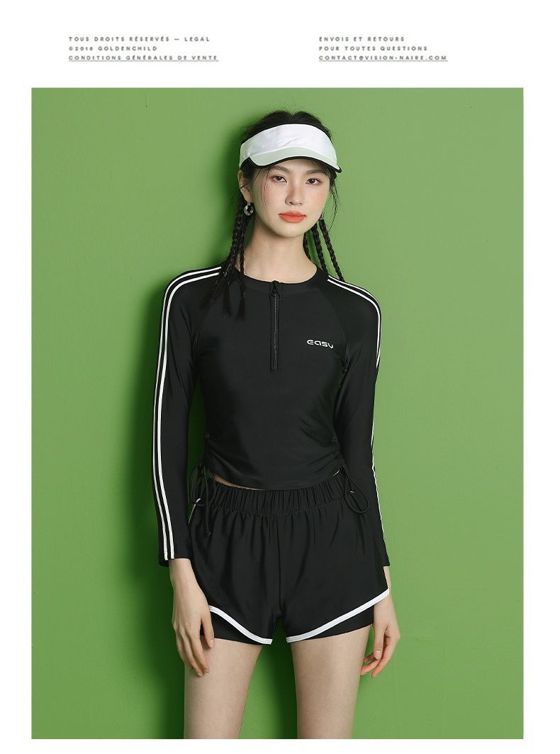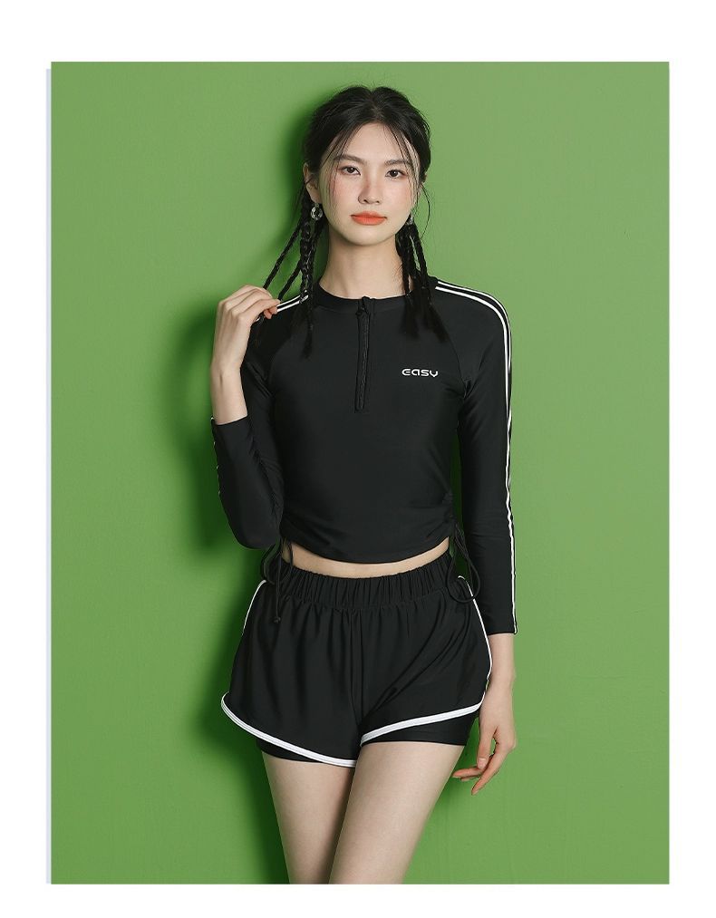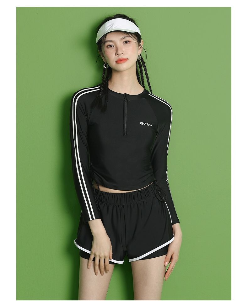 Set Đồ Bơi Nữ Rời Đùi Dài Tay Đi Biển Đi Bơi Chất liệu Polyester 88%, mật độ dệt vừa Áo có sẵn lớp đệm, hông áo có thể rút lên làm croptop cá tính