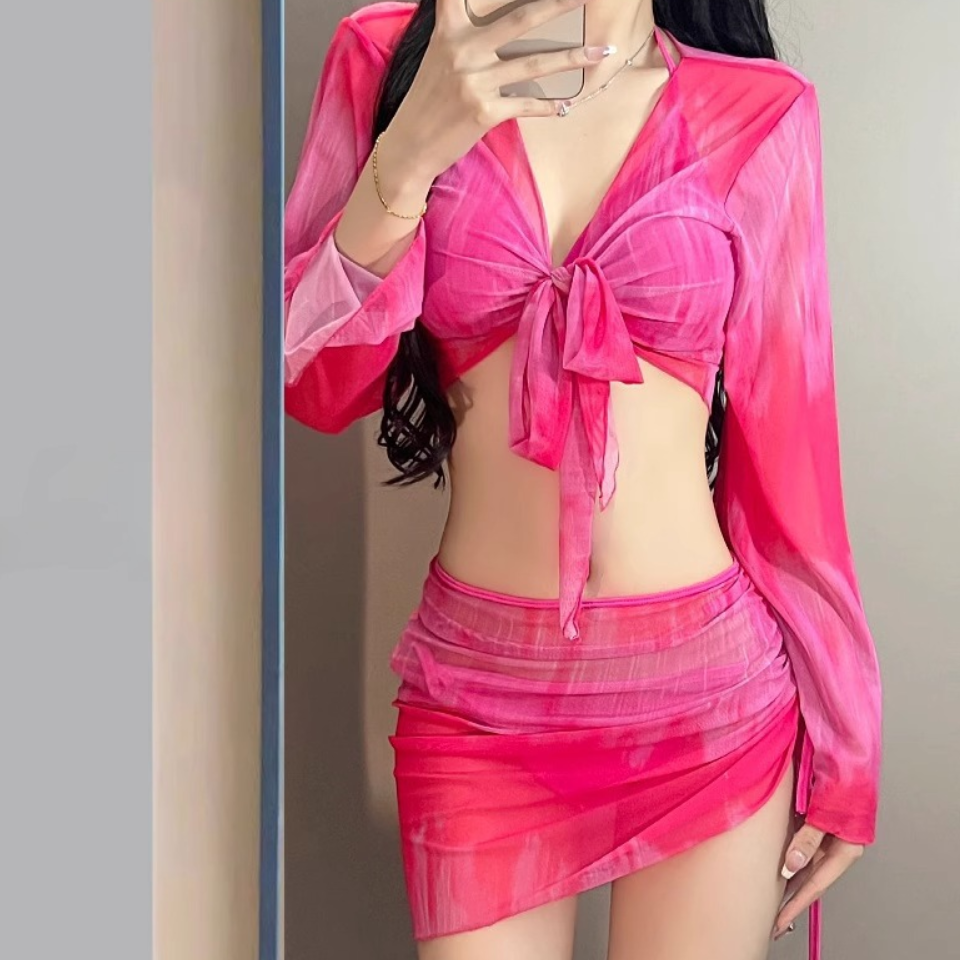 ✨Bikini Loang Màu Set 4 Món Áo Choàng Dài Tay Váy Rút Dây BK004 MayHomes Đồ Bơi Nữ 4 Mảnh