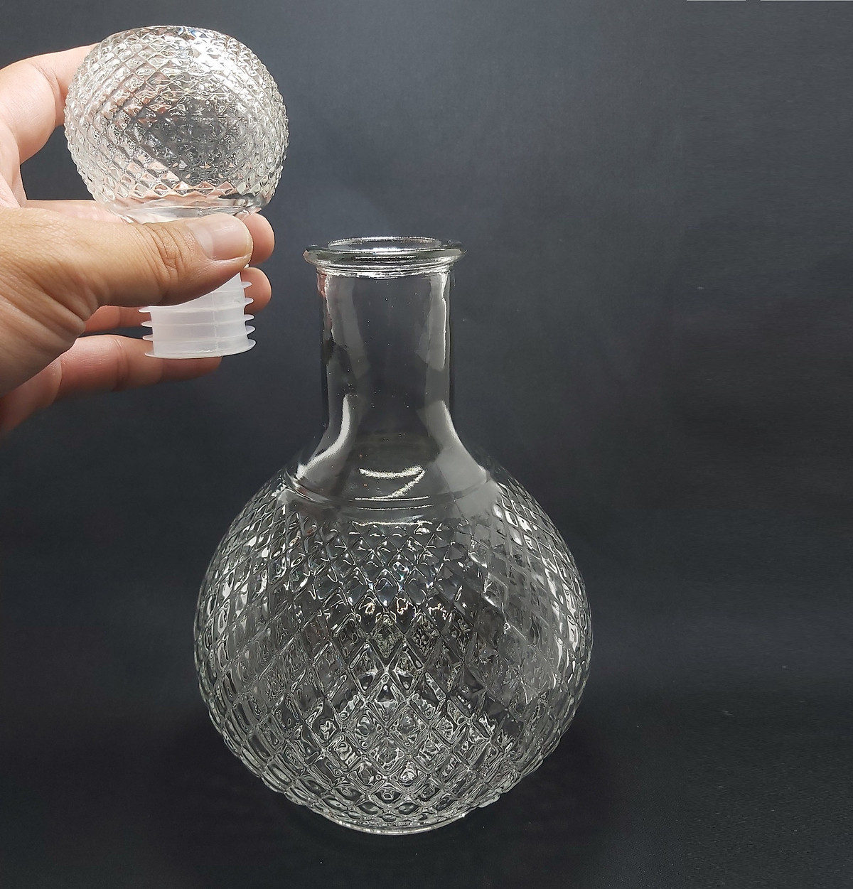 Chai Thủy Tinh đựng Rượu Bầu Tròn giác Kim Cương 970ML - Bình thủy tinh 970ml Cao Cấp - chai trong suốt