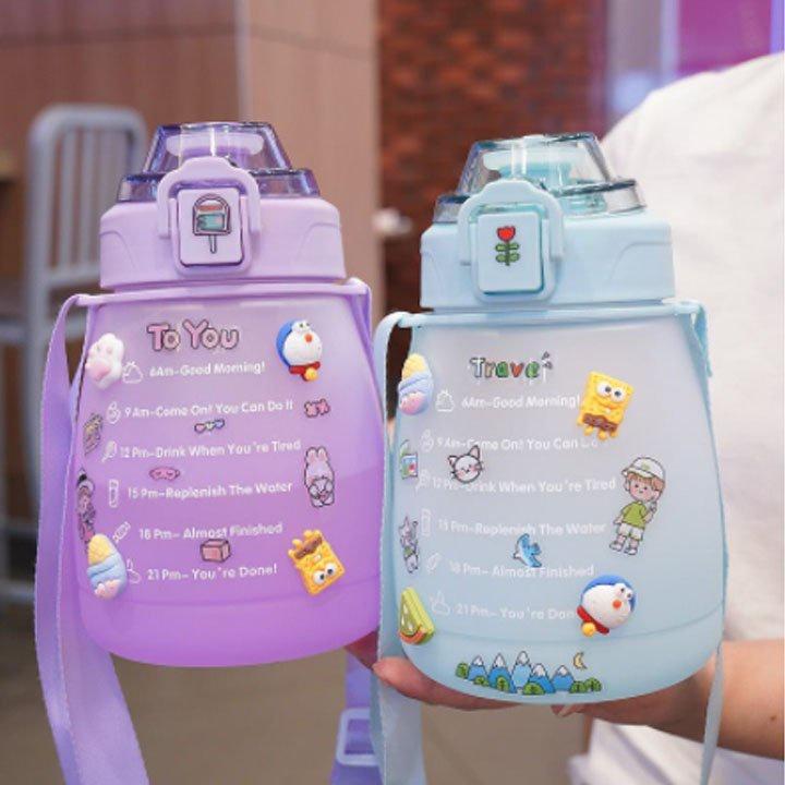 ✨Bình đựng nước có ống hút bật tự động khi mở nắp bình nước chia vạch báo giờ uống nước loại lớn 2 lít và 1,2 lít