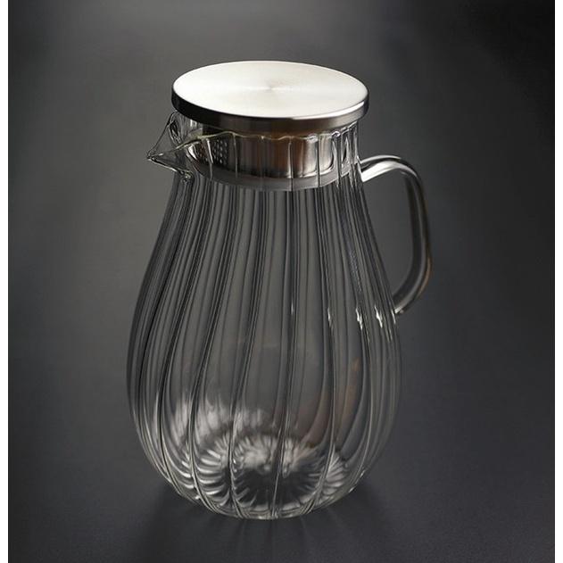 ✨Bình đựng nước uống thủy tinh chịu nhiệt cao cấp lên tới 400 độ C vân sọc bầu 1800ml