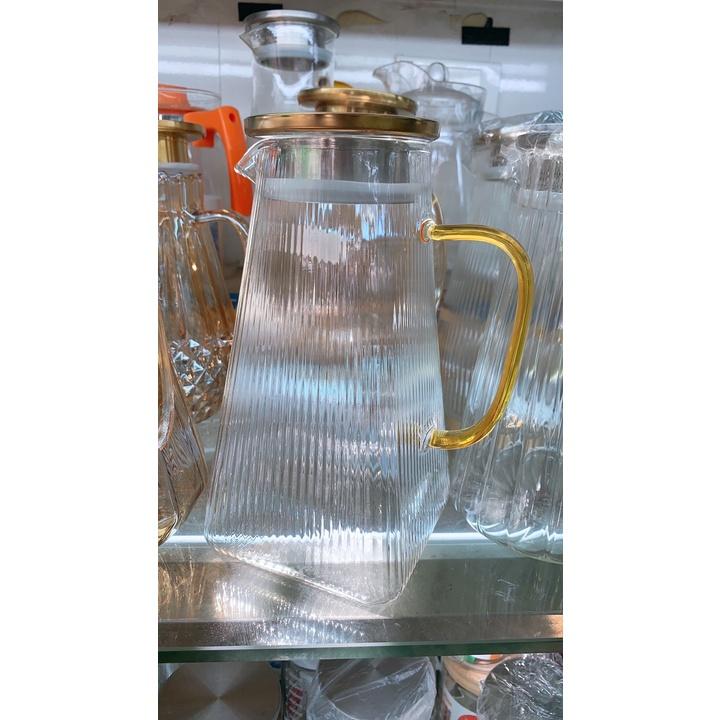 ✨Bình đựng nước uống thủy tinh chịu nhiệt lên thới 400 độ C vân tăm đáy vuông