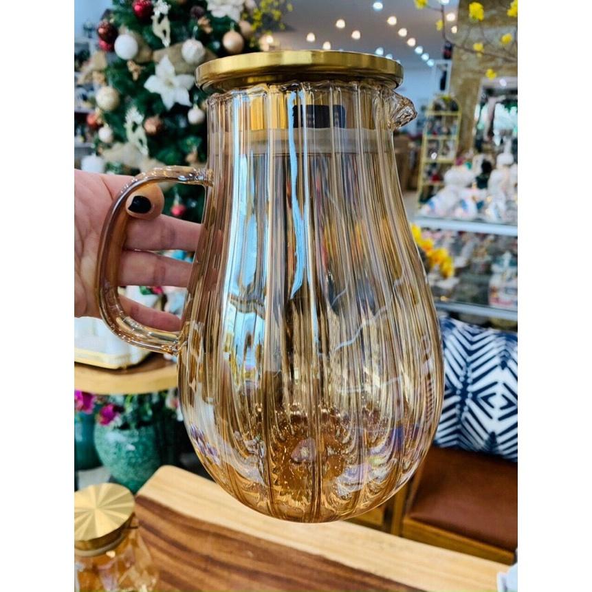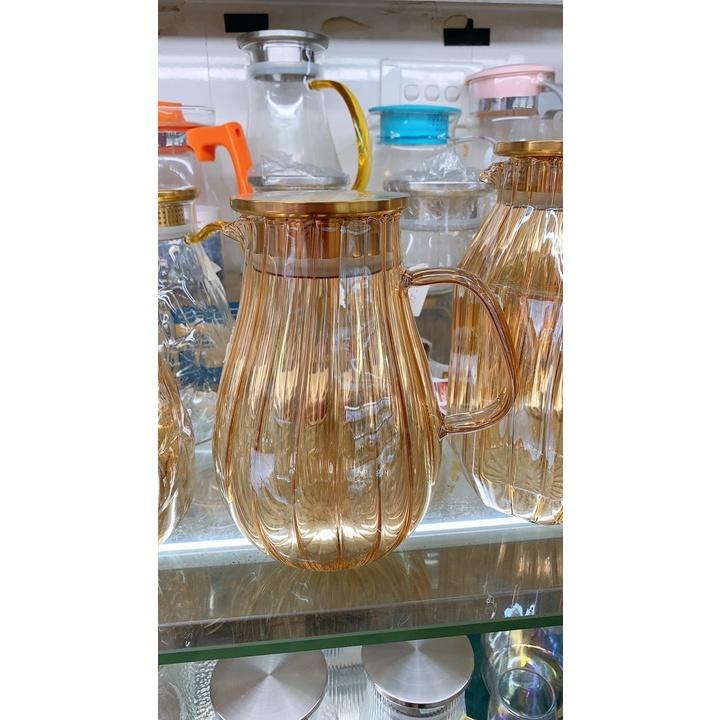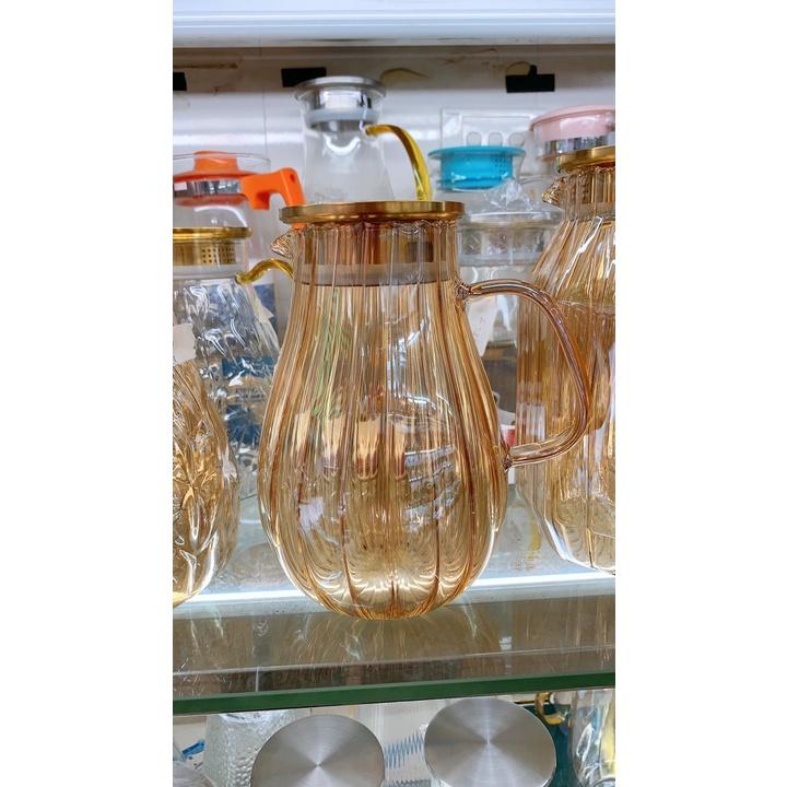 ✨Bình đựng nước uống thủy tinh vàng vân sọc bầu