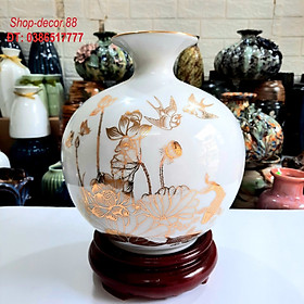 ✨Bình hút tài lộc phong thủy Sen vàng phú quý vẽ vàng 24k, gốm sứ Bát Tràng cao cấp (H26xD24cm)