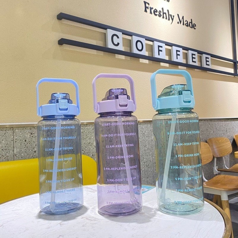 ✨Bình Nước 2 Lít Có Vạch Chia Nhắc Giờ Dành Cho Người Lười Uống Nước, Bình Đựng Nước Thể Thao 2L Kèm Ống Hút Tiện Dụng (Chọn Màu)