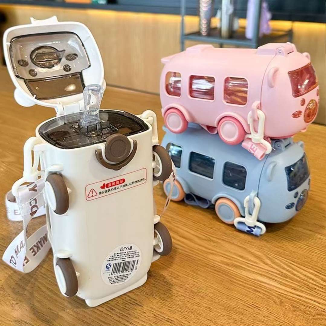 ✨Bình Nước Cho Bé, Bình Nước Xe Buýt 500ml, Có Ống Hút Và Dây Đeo Tiện Lợi