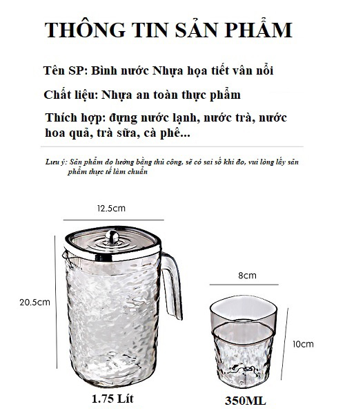 Chất liệu: Nhựa an toàn Dung tích: Bình 1.75L Ly 350ML Phân loại: SHOP BÁN BÌNH RIÊNG BÁN SET LY (4 CÁI) RIÊNG Kiểu dáng: bình vuông, họa tiết nhám Màu sắc: Trắng trong, Xám trong Thích hợp đựng nước lạnh, nước trái cây, nước trà, trà sữ dùng trong các quán ăn, quán nước, gia dình, công ***SHOP CÓ BÁN KHAY NHỰA ĐỰNG BÌNH LY, KHÁCH VÀO SHOP ĐỂ XEM THÊM MẪU NHÉ! Sản phẩm này là tài sản cá nhân được bán bởi Nhà Bán Hàng Cá Nhân và không thuộc đối tượng phải chịu thuế GTGT. Do đó hoá đơn VAT không được cung cấp trong trường hợp này.