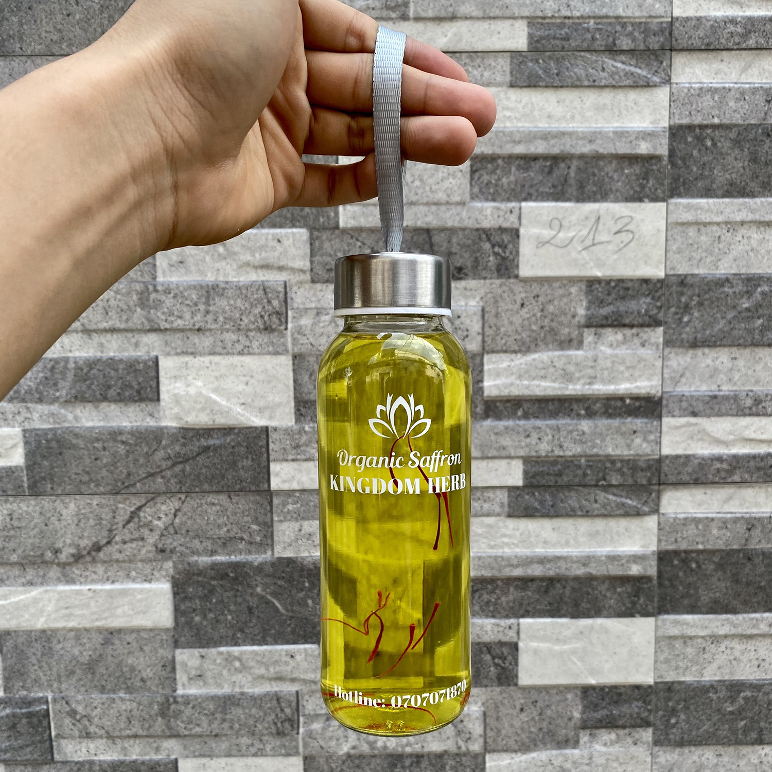 Bình thủy tinh đựng nước saffron Kingdom cao cấp, chai thủy tinh có nắp đậy và dây xách tiện lợi - 500ml