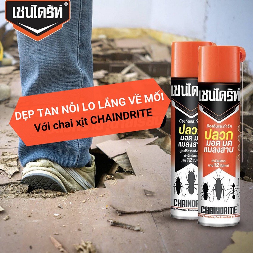 CHAINDRITE là thương hiệu diệt côn trùng nổi tiếng số 1 Thái Lan thuộc tập đoàn Sherwood được nhập khẩu trực tiếp và phân phối tại Việt Nam.Từ khi được cho ra mắt thị trường cho đến nay, thì loại thuốc này luôn được nhiều khách hàng tìm kiếm để mua về nhà tự diệt mối tại nhà, hoặc các công ty diệt mối sử dụng.