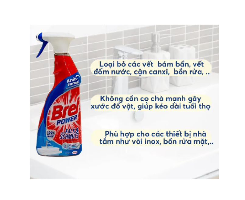 ✨Bình Xịt Tẩy Rửa Đa Năng Bref Power 750ml, nhập khẩu Đức- Tẩy dầu mỡ, Tẩy Bếp, Thiết Bị Nhà Bếp, Nhà tắm, Inox, hiệu quả lên đến 99.9%.
