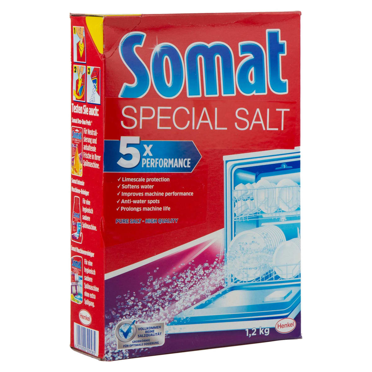 Muối chuyên dung dành cho máy rửa bát với công thức đặc biệt, sản xuất tại CHLB Đức đạt tiêu chuẩn EC trong xử lý nguồn nước giúp máy rửa bát họat động tốt và luôn được bảo vệ trước tác hại của các ion tự do có trong nước như canxi magie Việc xử lý và dung hòa nguồn nước, làm mềm nước.