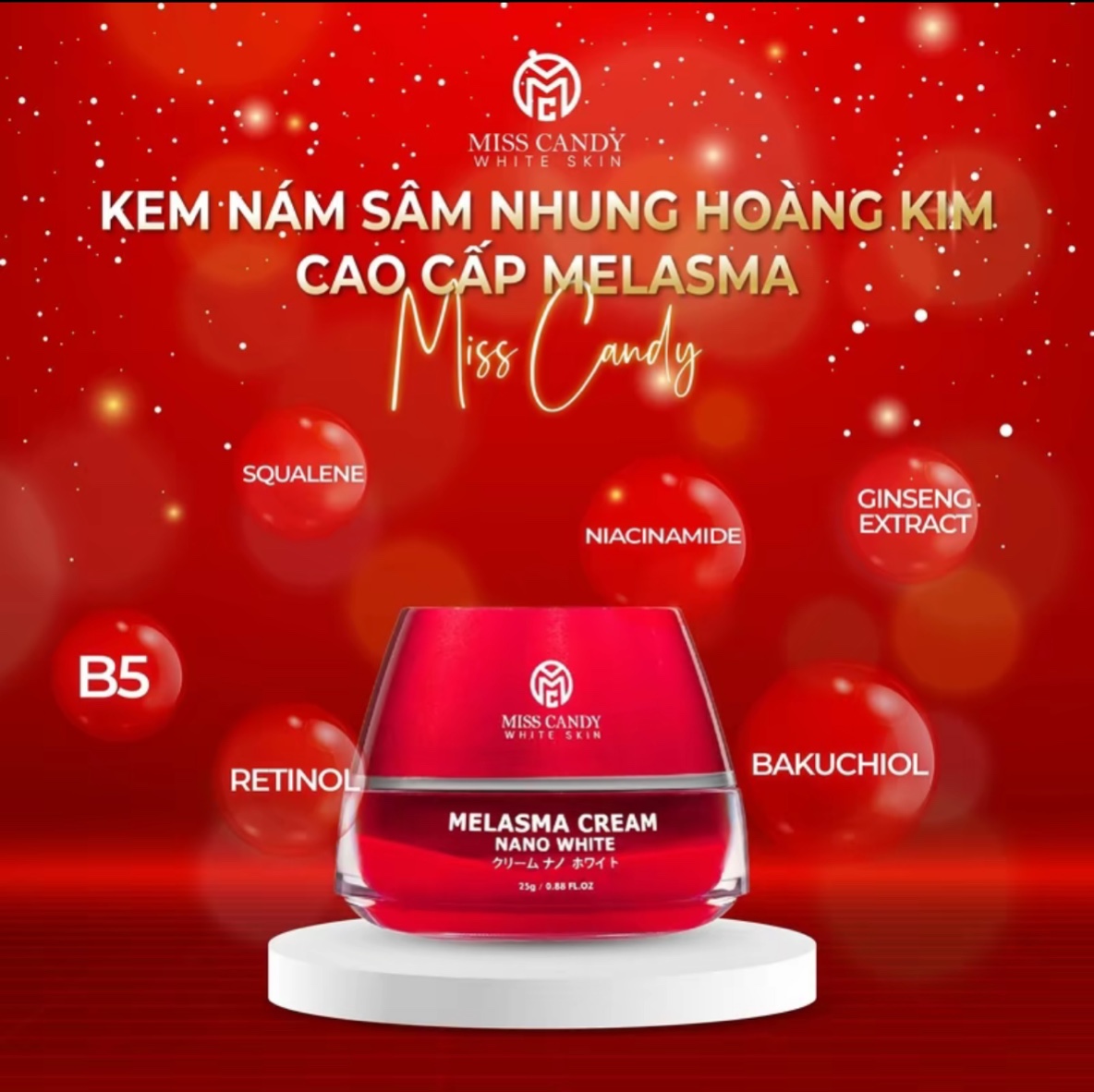 - Kem Dưỡng Trắng Da Mờ Thâm Nám Sâm Nhung Hoàng Kim Cao Cấp Melasma Cream Nano White MISS CANDY 25g: