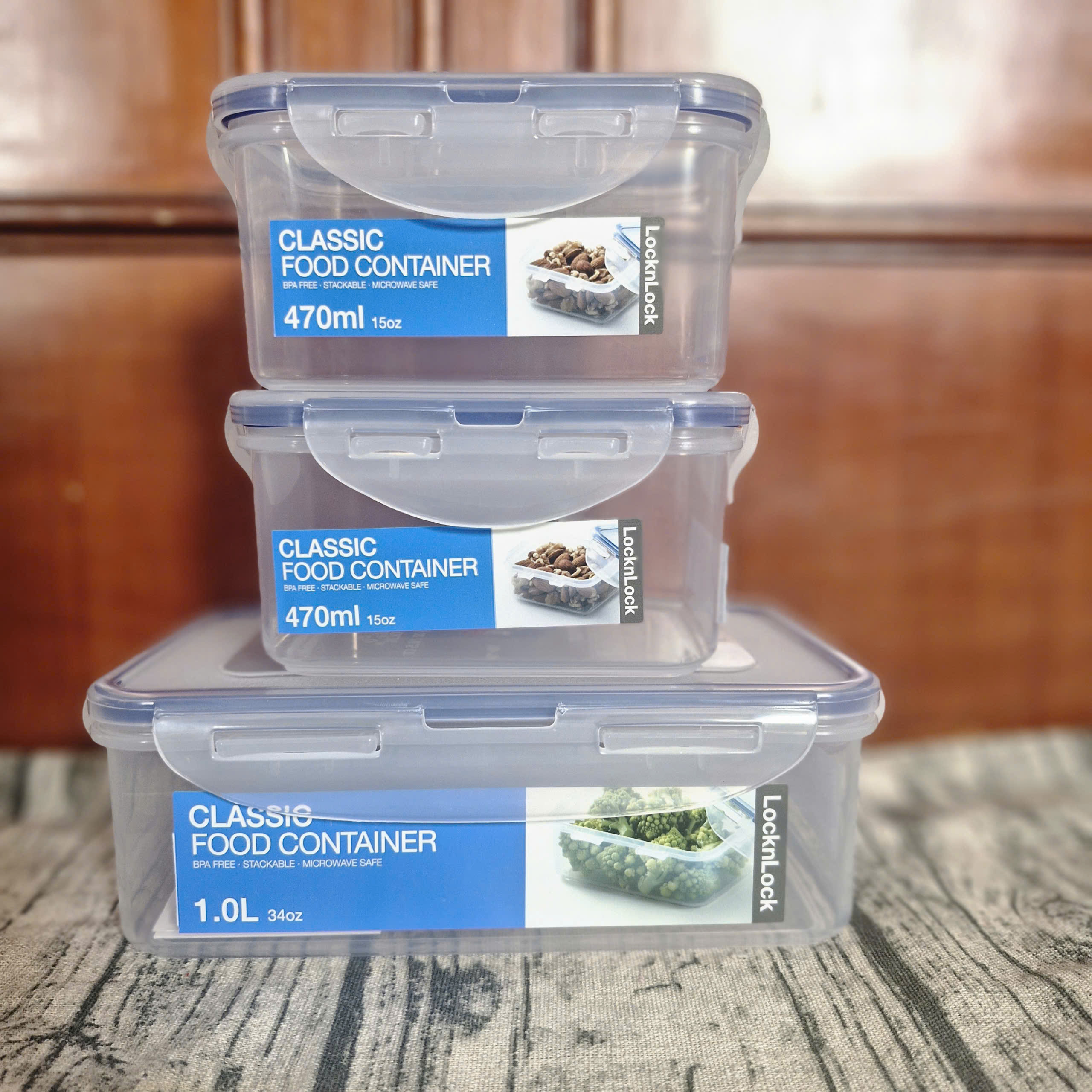 ✨Bộ 3 Hộp Nhựa Classic Lock&Lock Hình Chữ Nhật Khóa 4 Cạnh Kín Hơi (1 Hộp 1L và 2 Hộp 470ml)