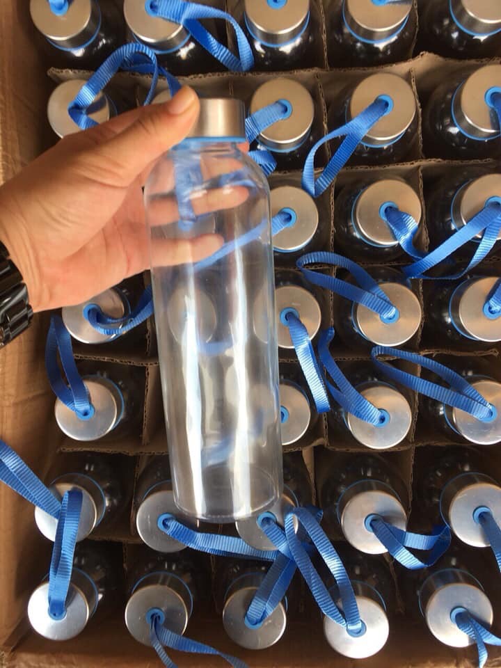 Bình nước thủy tinh 500ml xinh xắn, tiện dụng cho bạn đựng đồ uống hằng ngày.