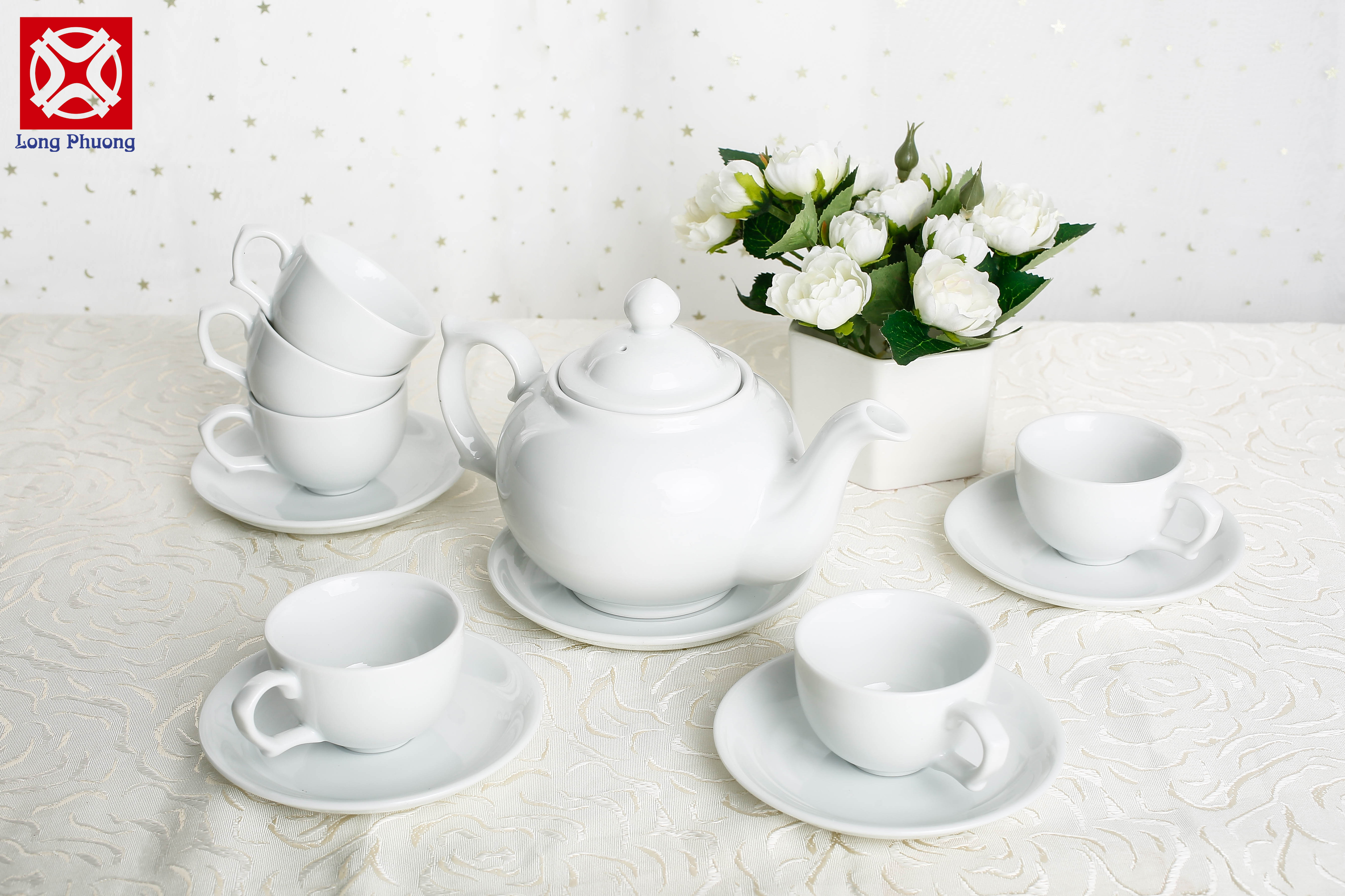 Bộ ấm bầu 2 trắng của Sứ Long Phương, bên ngoài được phủ một lớp men trắng trong và có độ bóng cao, là loại men đặc trưng của Long Phương, cũng chính là điểm khác biệt tạo nên sự đẳng cấp của sứ Long Phương.