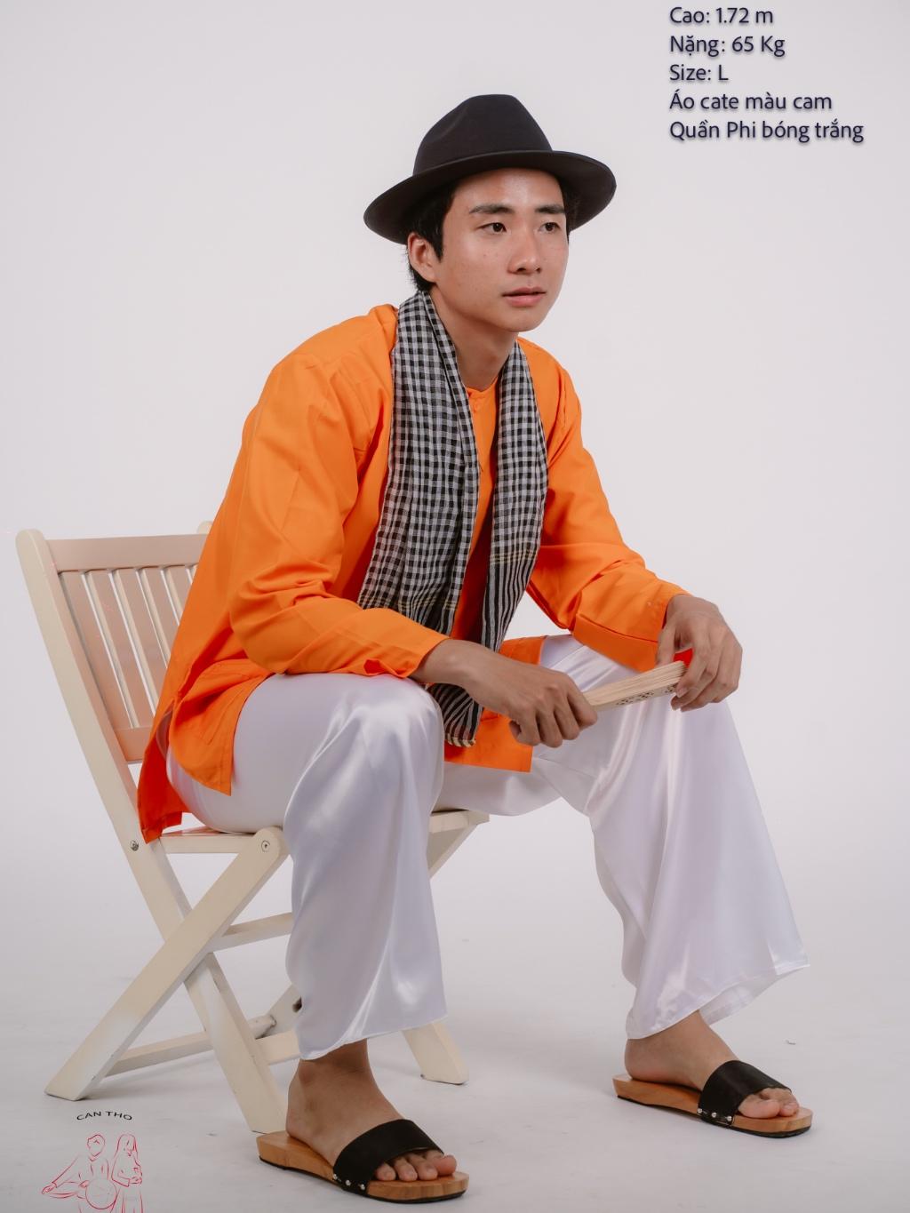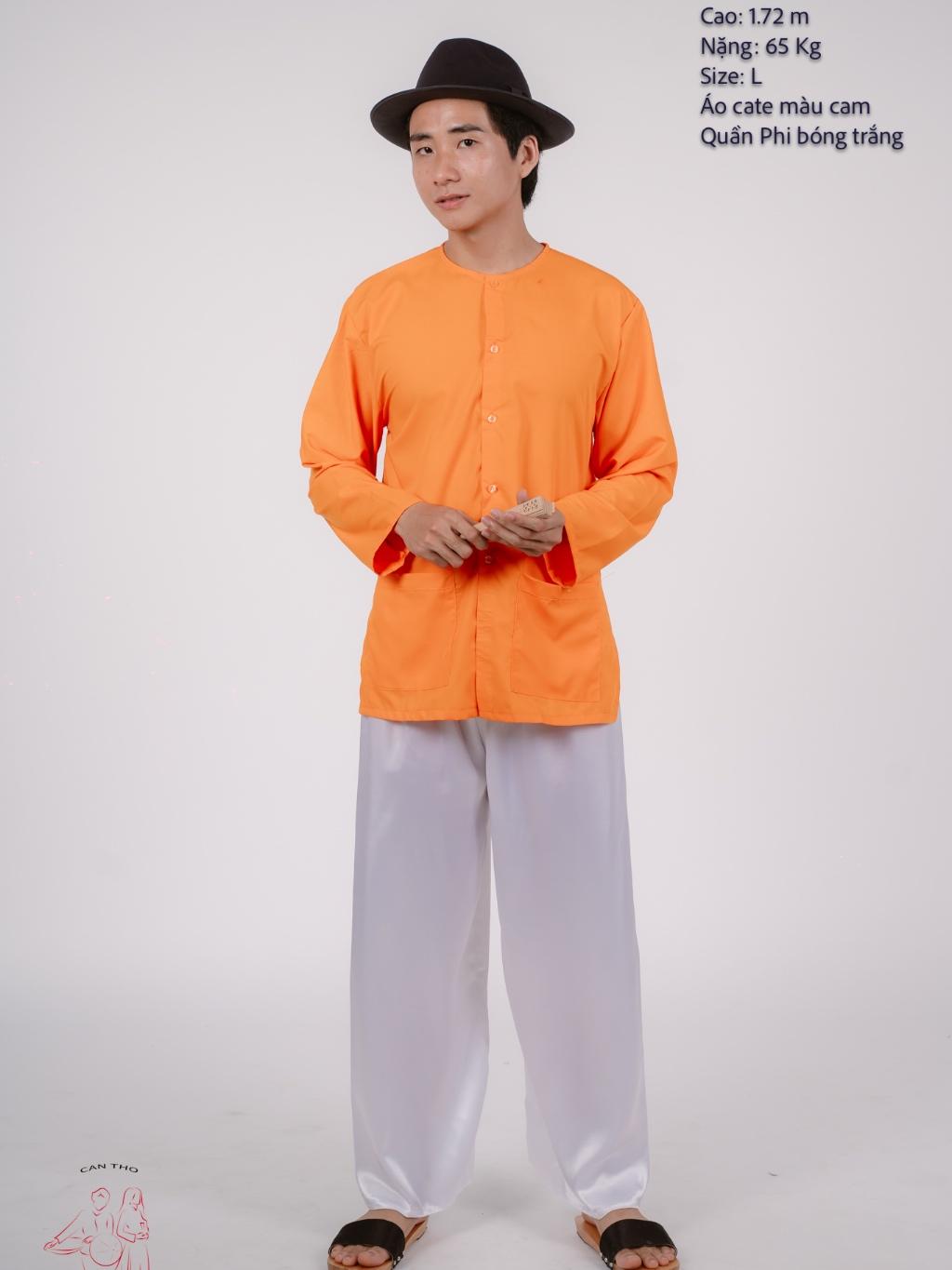✨Bộ áo bà ba nam phối áo cate cam+ Quần phi trắng - Có bộ bà ba Bigsize
