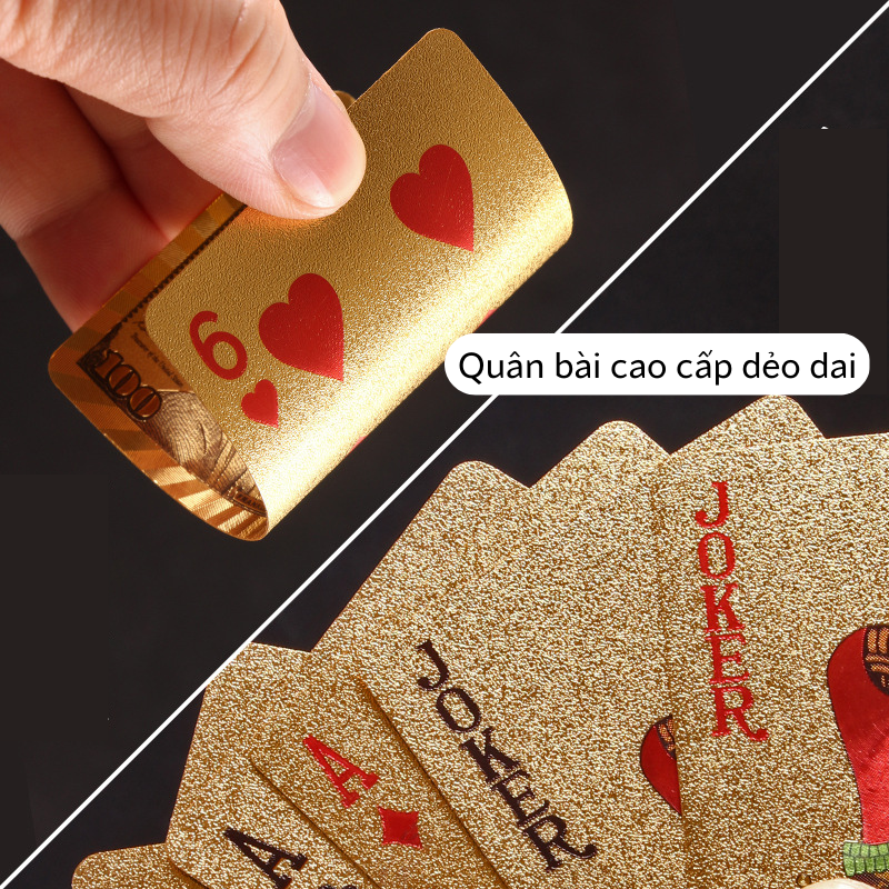 - Ngoài dùng làm chơi bài còn là món quà tặng độc đáo, đẳng cấp cho người thân. Bộ bài tây mạ Si vàng 24K là lựa chọn hoàn hảo cho những giờ giải lao với bạn bè cực ngầu