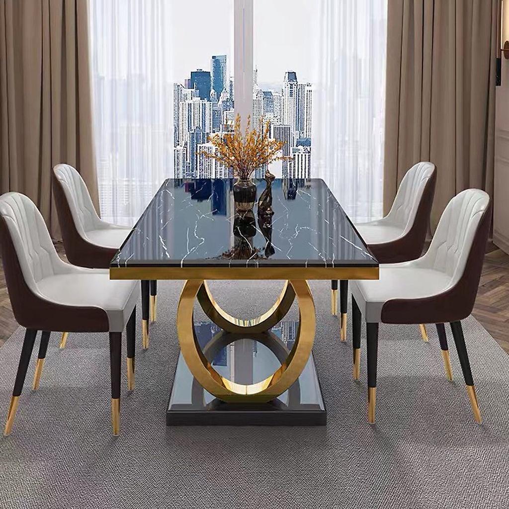 ✨Bộ bàn ăn mặt đá Cẩm thạch nhân tạo khung inox mạ vàng kết hợp ghế Monet phong cách Bắc Âu