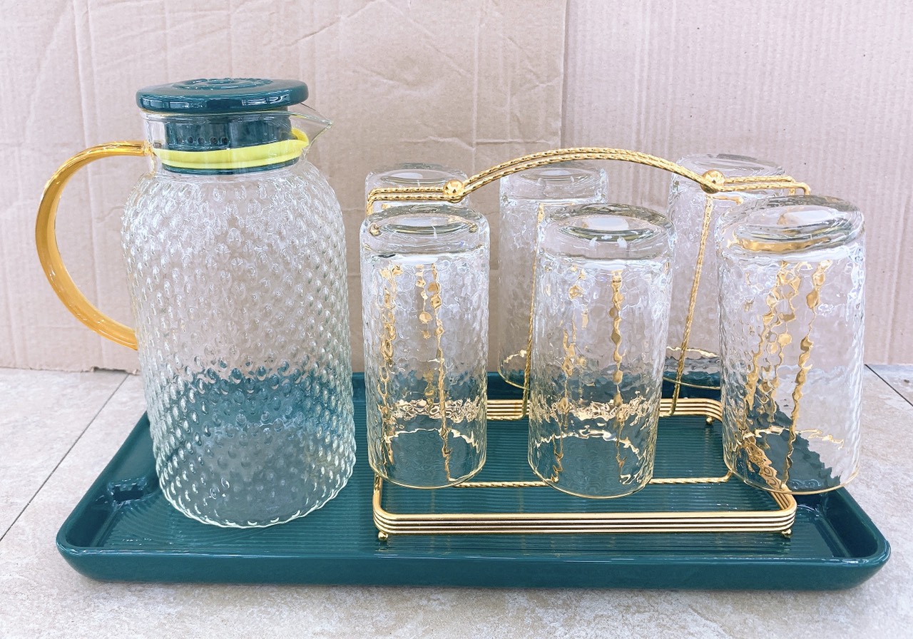 Bộ bình nước thủy tinh chịu nhiệt cao, có thể chịu nhiệt lên đến 400 độ, có tính thẩm mỹ cao và tiện ích cho người nội trợ. Sản phẩm nổi bật bởi thiết kế
