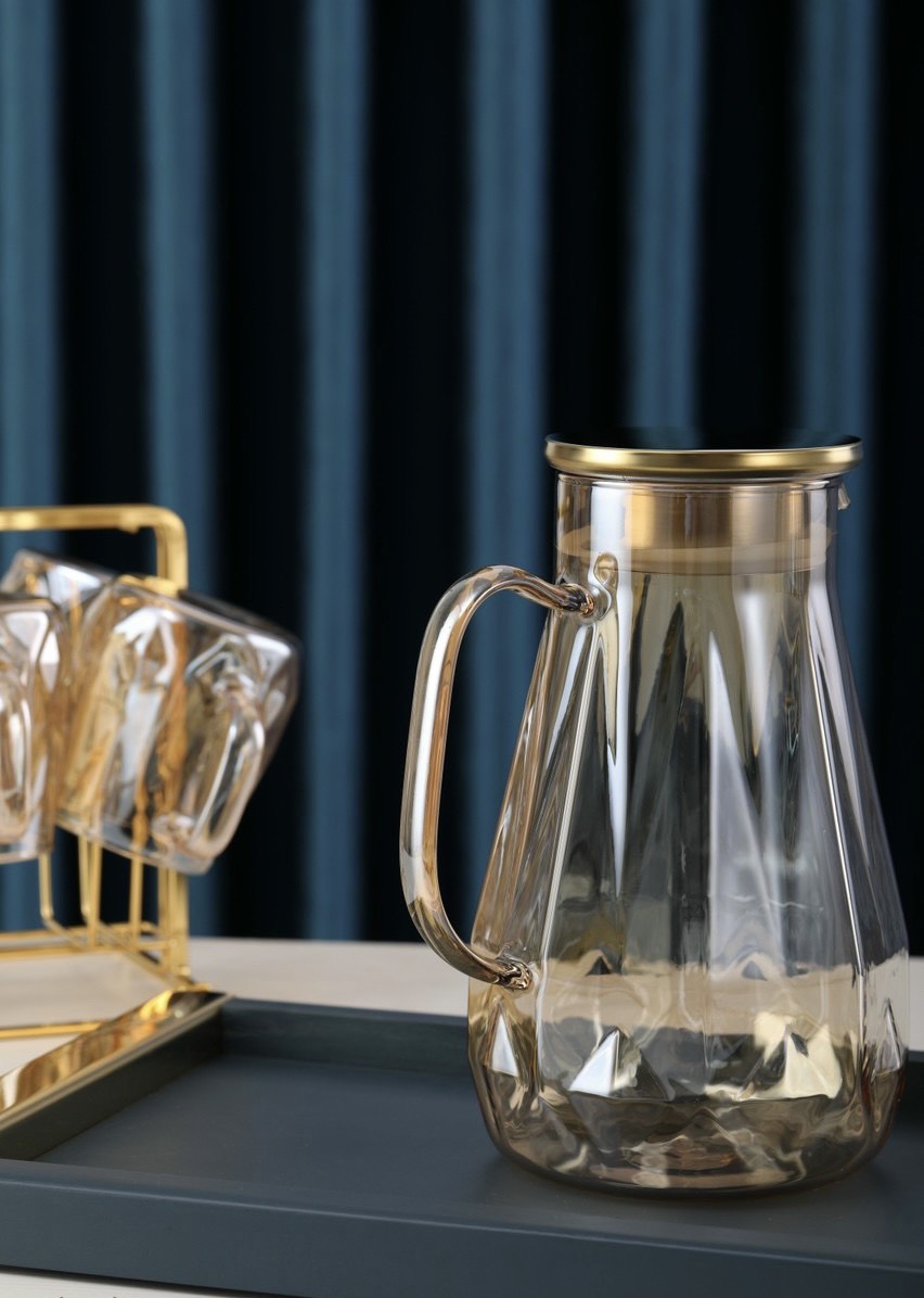 ✨BỘ BÌNH ĐỰNG NƯỚC THỦY TINH CHỊU NHIỆT CAO CẤP KÈM 6 CỐC VÀ KHAY ÚP - VD83