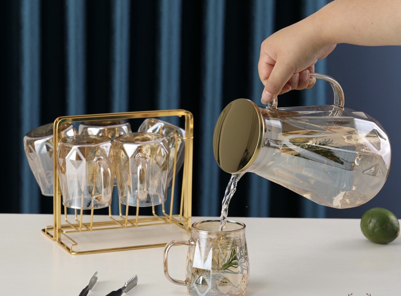 - BỘ SẢN PHẨM BAO GỒM: 1 GIÁ ÚP CỐC, 1 BÌNH, 6 CỐC