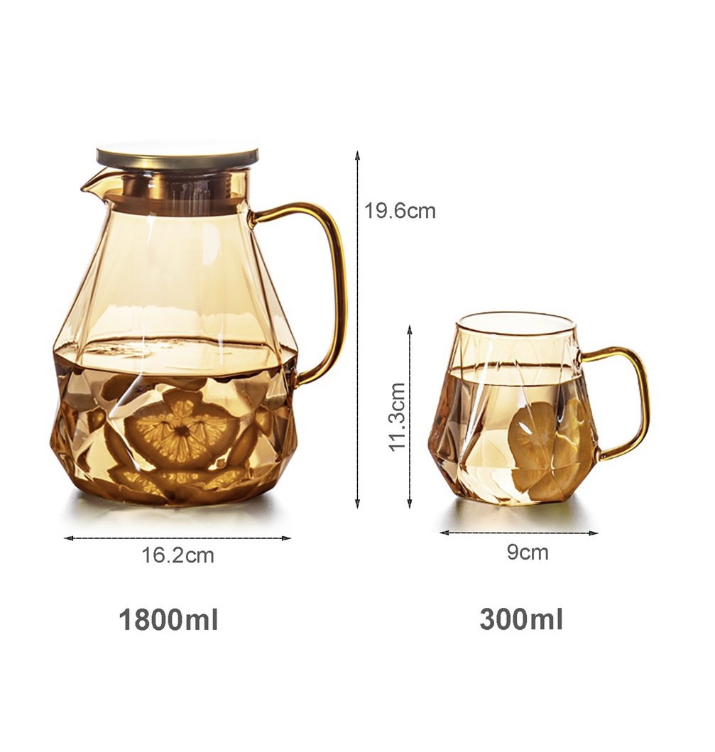 Set Bộ bình cốc thủy tinh chịu nhiệt ZS015, bình 1800ml+ 6 ly 300ml