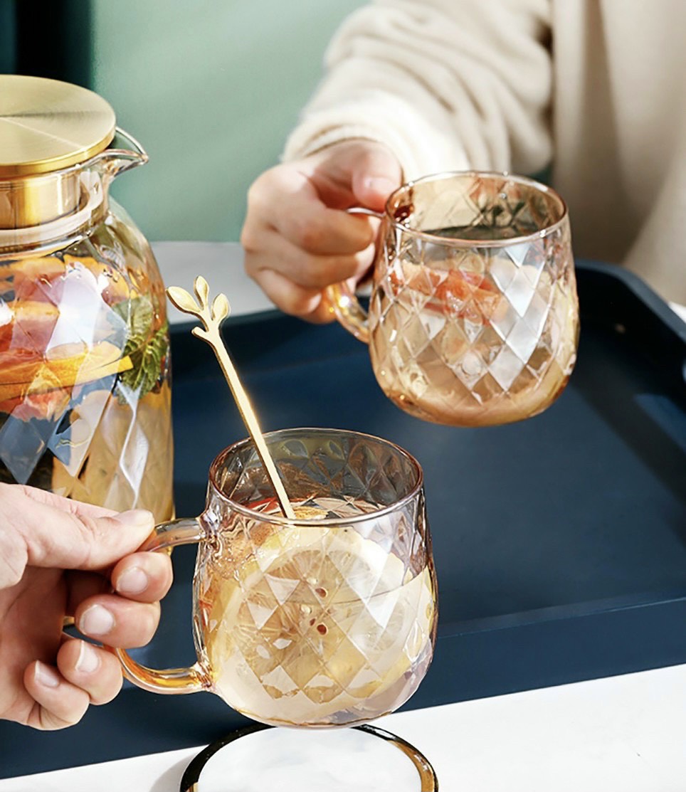 Bộ bình nước thủy tinh chịu nhiệt cao, có thể chịu nhiệt lên đến 400 độ, có tính thẩm mỹ cao và tiện ích cho người nội trợ. Sản phẩm nổi bật bởi thiết kế