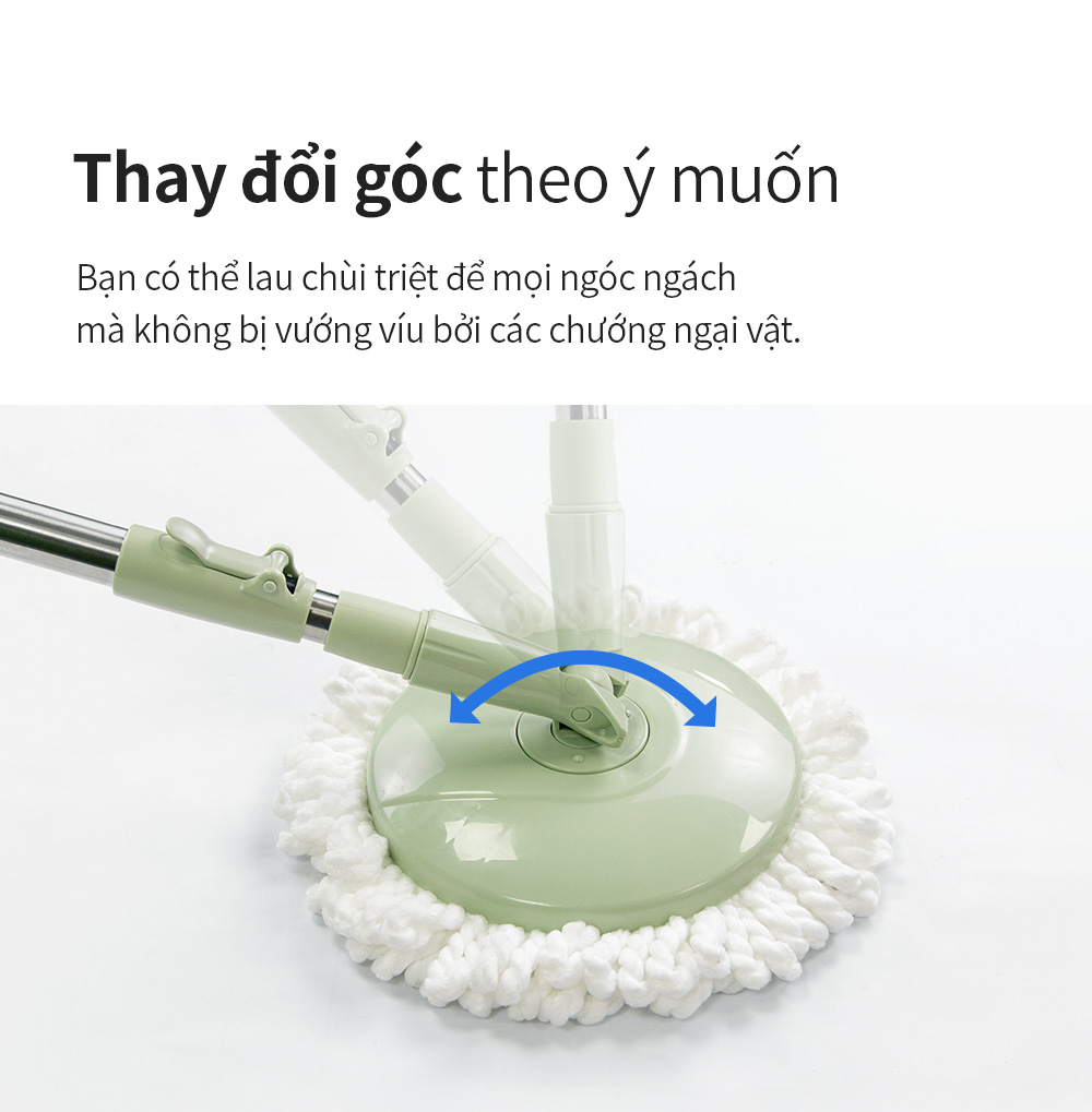 - Bộ cây lau nhà xoay tay 360 độ có thể sử dụng bất kì nơi đâu với thùng giặt và vắt nước gọn nhẹ