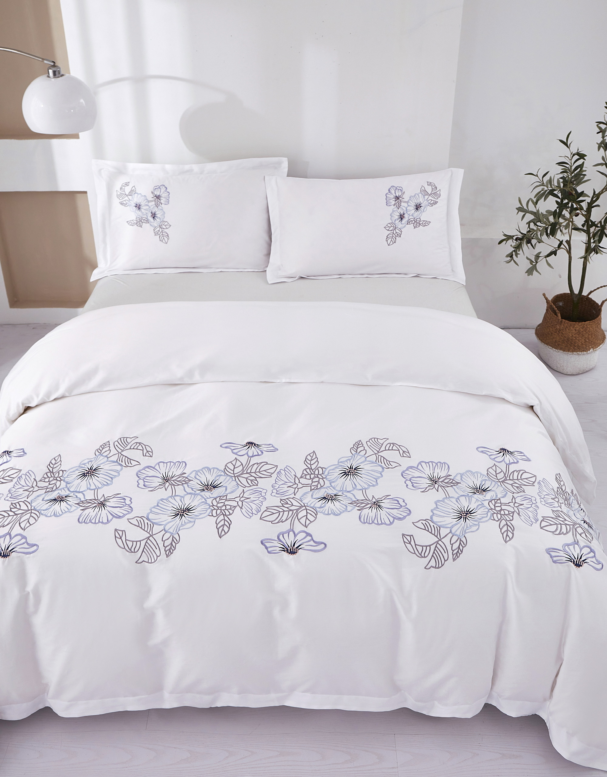 Set BELLA BLUE SKY với họa tiết thêu đơn giản ,mang đến sự tinh tế và tối giản . chất liệu Lụa cotton Satin cao cấp T300, mềm mát , thoáng khí tuyệt vời , ngăn vi khuẩn , thấm hút mồ hôi tốt, dễ bảo quản, sử dụng và đặc biệt an toàn thân thiện cho mọi làn da.