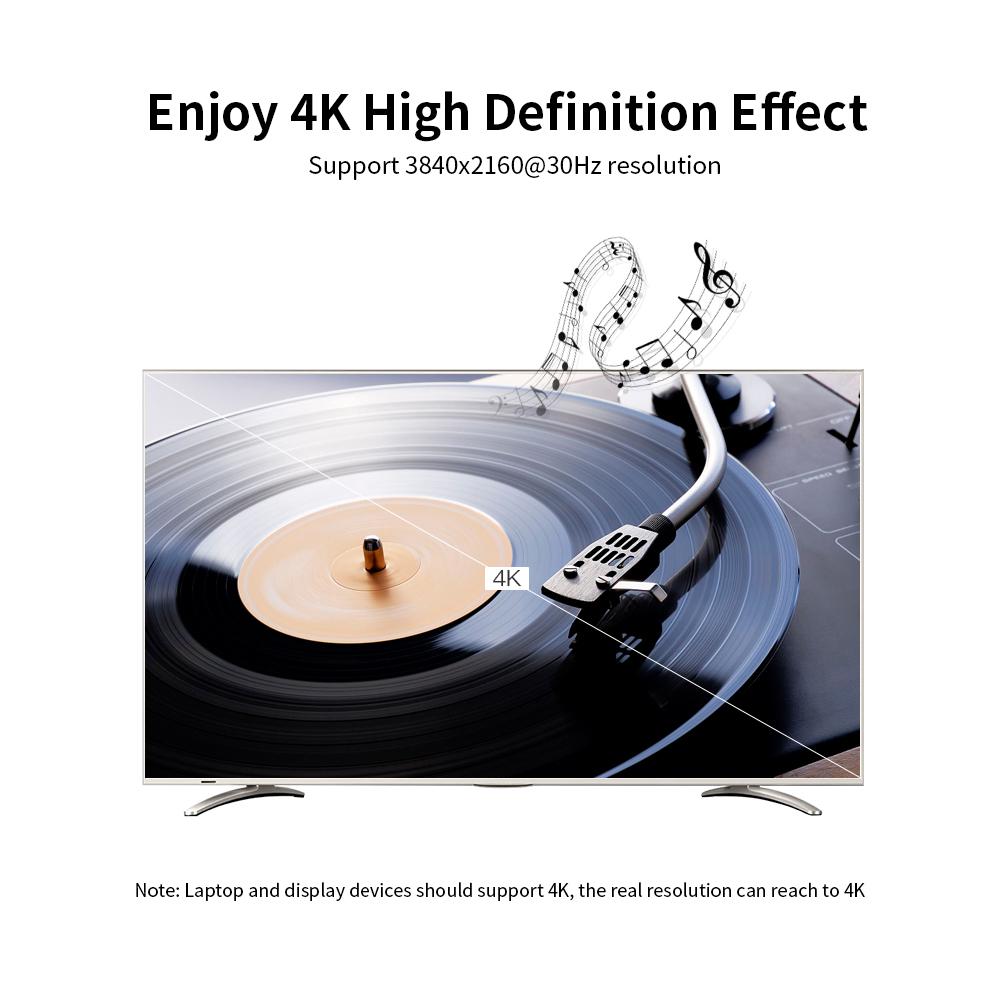 VENTION Type-C to HD Adapter supports 4K high definition. You can enjoy largescreen at home or make presentation on a company conference. Metal shell makesit durable and solid. Aluminium foil shielding gives a great and