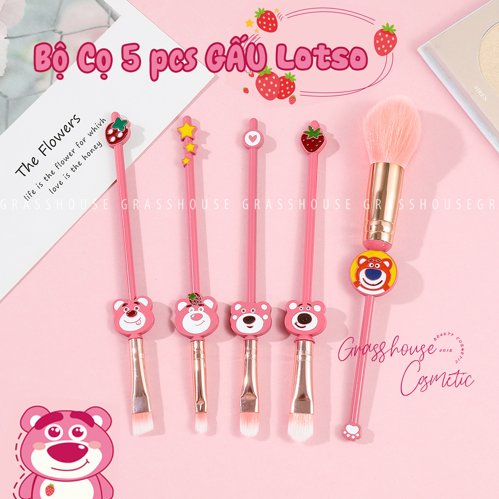 ✨BỘ CỌ TRANG ĐIỂM MAKE UP 5 CÂY GẤU LOTSO HÀNG THỦ CÔNG ĐIÊU KHẮC PHUN SƠN TỈNH ĐIỆN CAO CẤP (KÈM TÚI ĐỰNG)