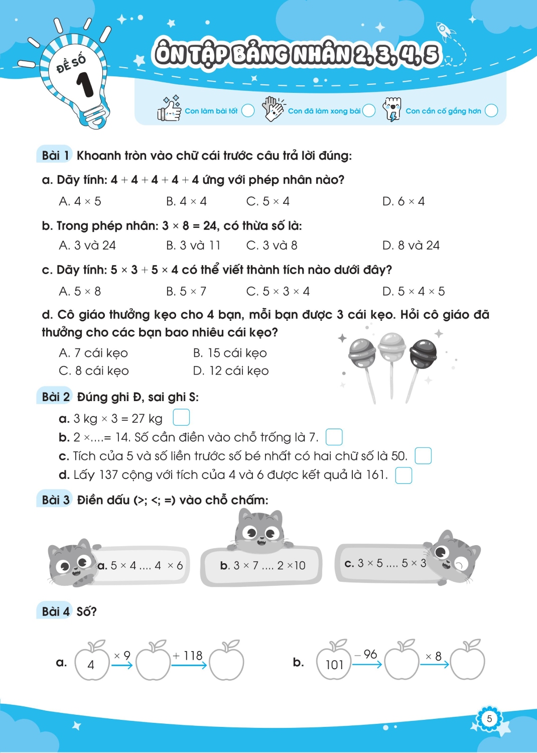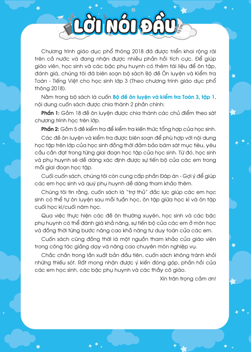 Bộ đề ôn luyện và kiểm tra Toán Tập 1 và Tập 2 lớp 3 là người bạn đồng hành tuyệt vời dành cho các em học sinh lớp 3 theo chương trình giáo dục mới. Sách được chia thành hai phần rõ ràng: Đề ôn luyện giúp các em nắm vững kiến thức cơ bản, luyện tập hàng ngày một cách bài bản; Đề kiểm tra giúp các em tự đánh giá năng lực, chuẩn bị sẵn sàng cho các kỳ thi trên lớp. Với nội dung bám sát chương trình học, trình bày dễ hiểu và bài tập đa dạng, cuốn sách không chỉ giúp các em học tốt mà còn khơi dậy niềm yêu thích với môn Toán.