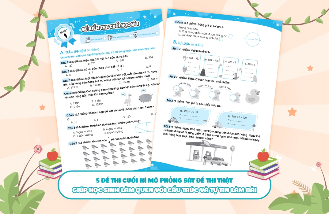 Phần đề kiểm tra: Gồm 5 đề kiểm tra cuối học kỳ để kiểm tra, đánh giá kiến thức tổng hợp của học sinh.